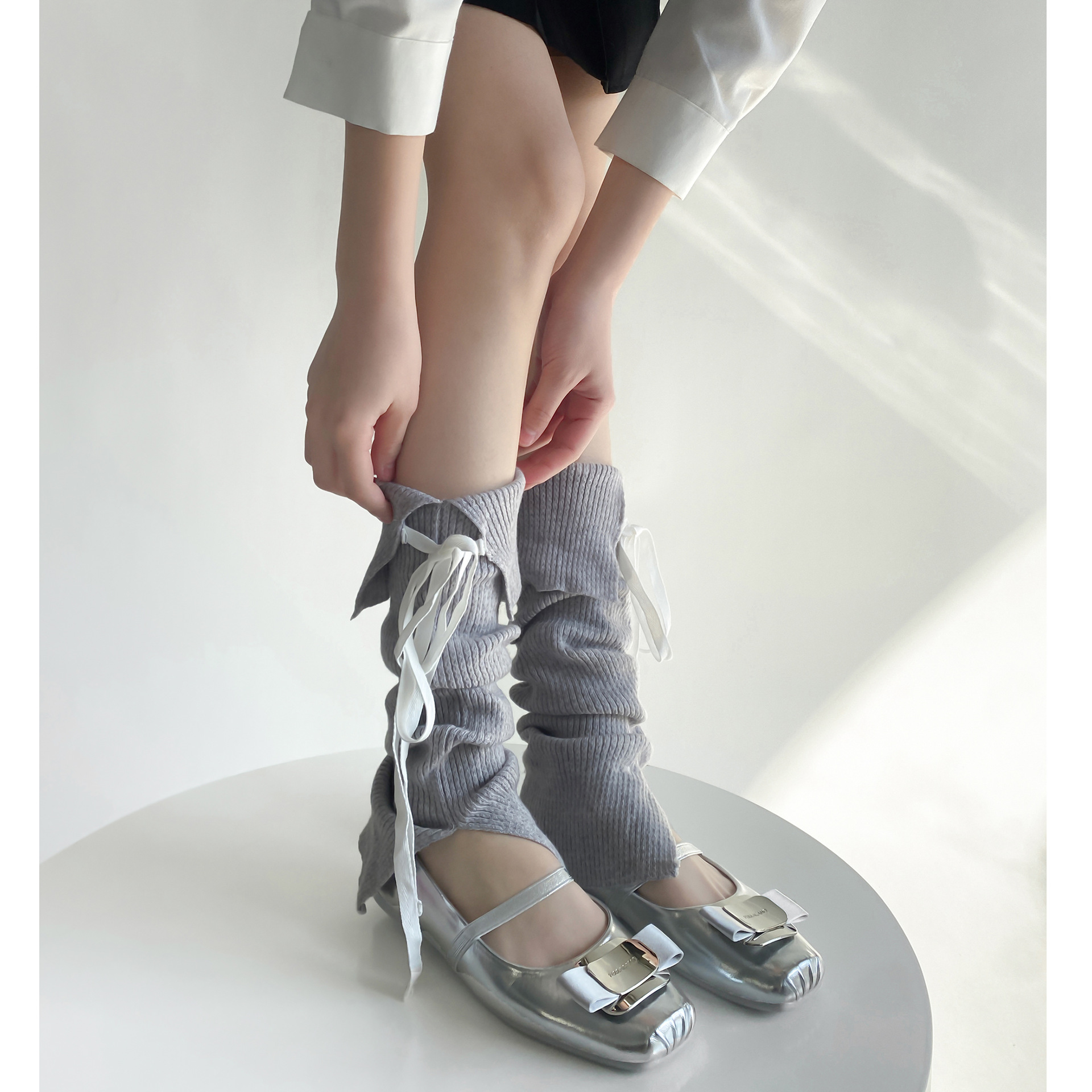 Ballet Style Sweet Girl Niche Straps Bowknot Pile Knitted Solid Color Socks Korean Style All-match Split Leg Covers
