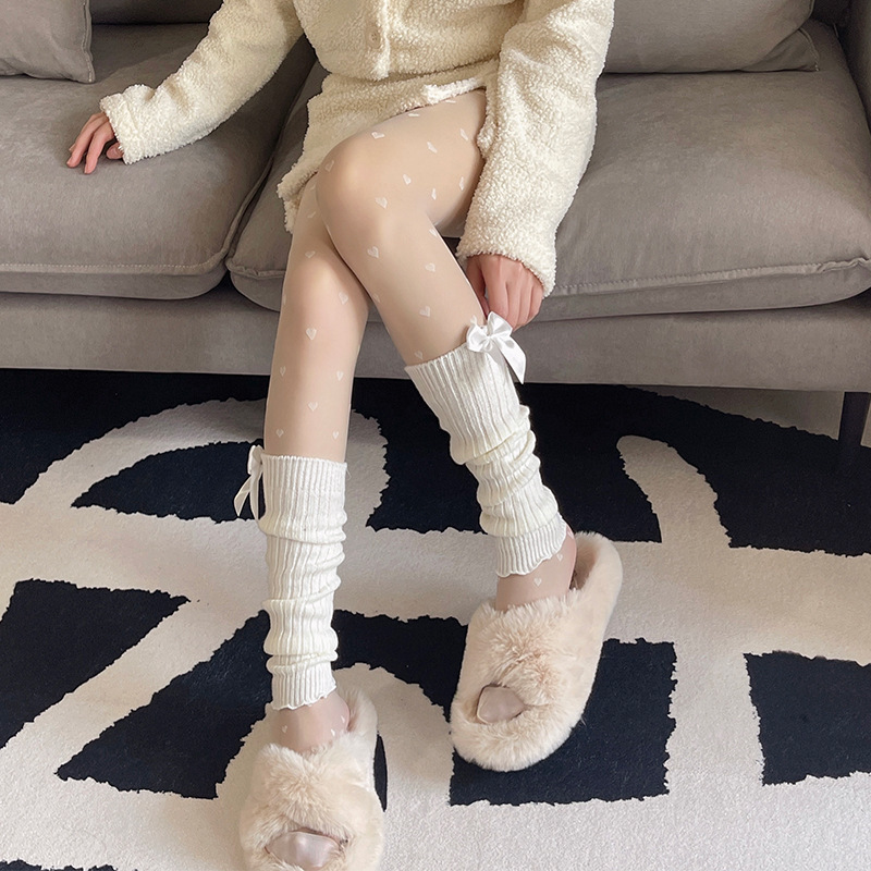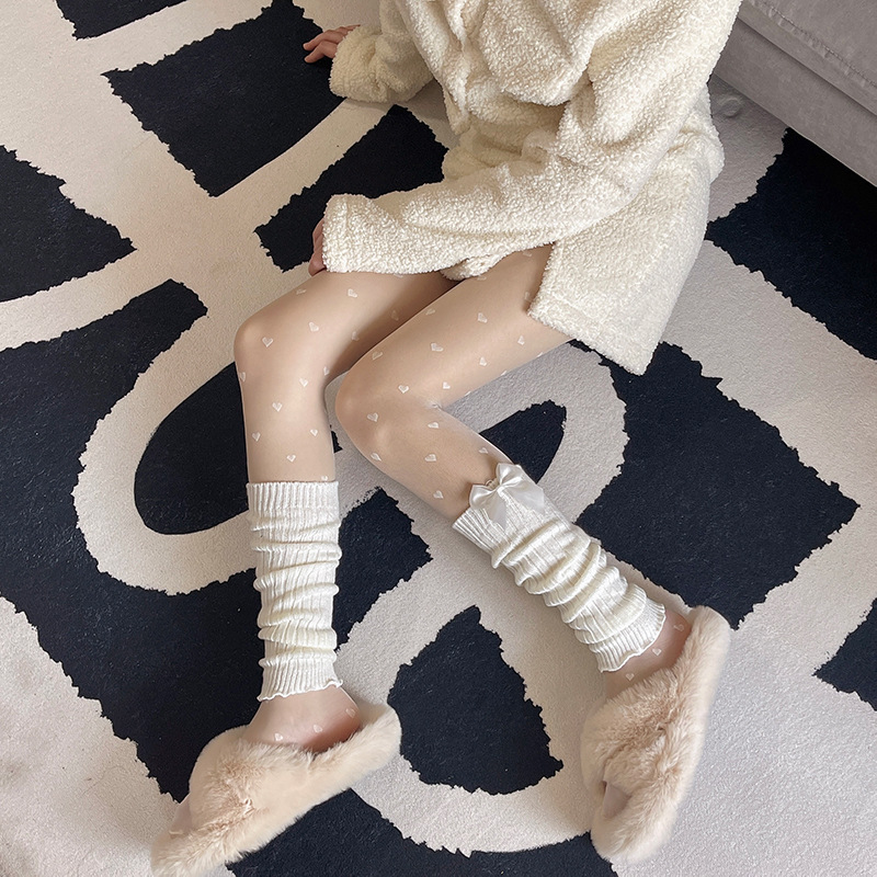 Japanese Sweet JKAutumn And Winter Lolita Bow Milky White Knitted Pile Socks Autumn And Winter Warm Mid-tube Socks For Women