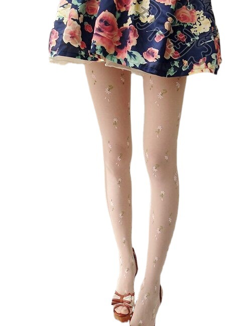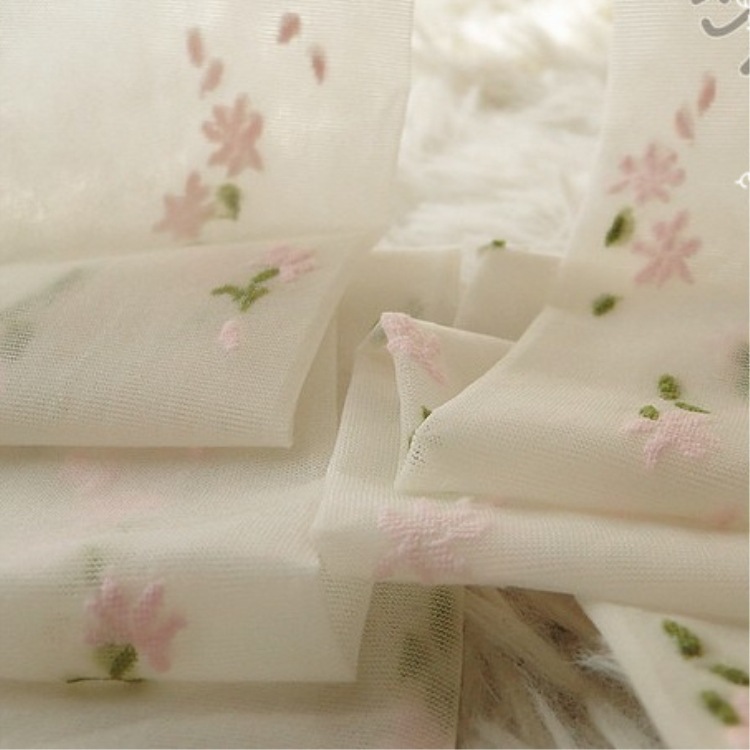Small Fresh Japanese Original Thin Transparent Stockings Fresh Flocking Floral Pantyhose Japanese Jacquard Stockings