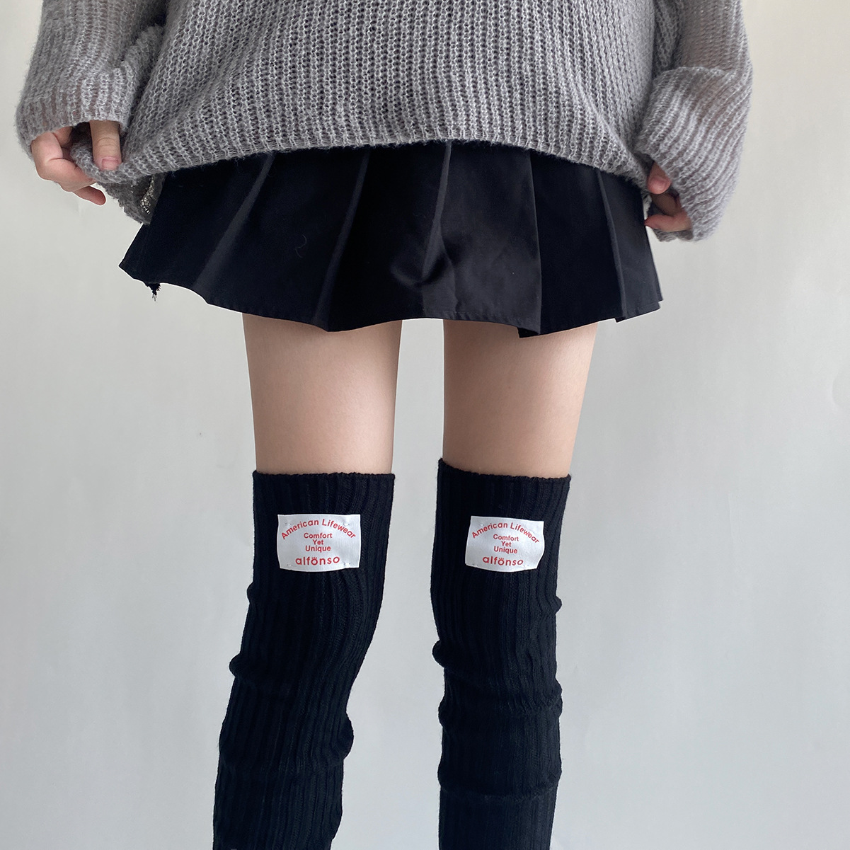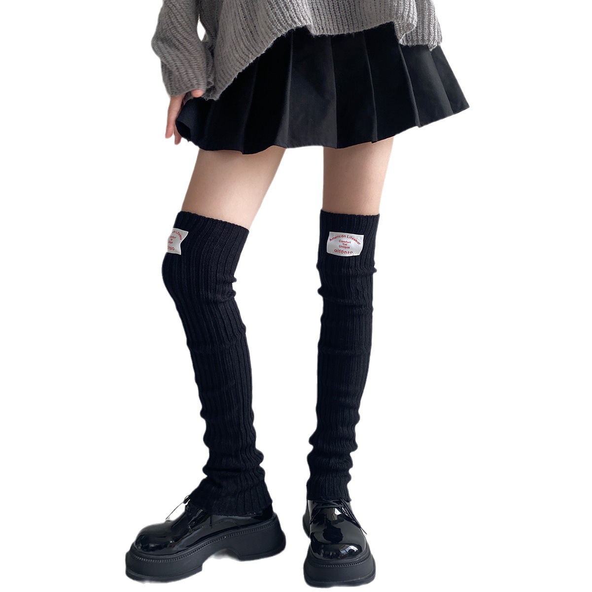 Korean Style Personality Red And White Label Thick Line Knitted Socks Leg Covers Solid Color Black And White Gray Y2k Japanese Style Pile Socks Keep Warm