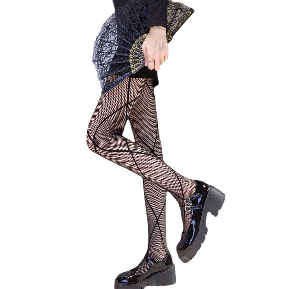Autumn And Winter Black Bottoming Fishnet Stockings Sexy Beautiful Legs Stockings With Feet Tights Cross Thin Socks See-through Stockings For Women