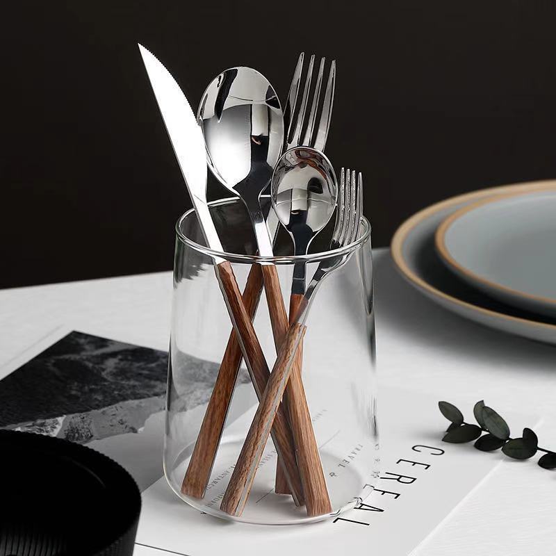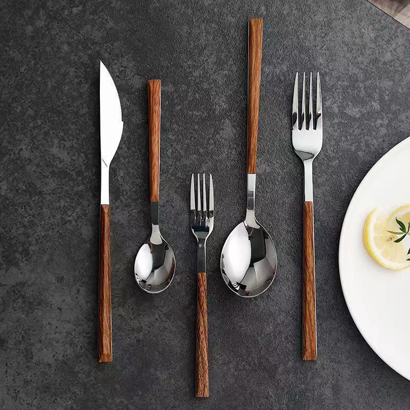 Imitation Wood Grain Western Tableware Japanese Knife And Fork Spoon Three-piece Set Steak Knife And Fork Household Stainless Steel Dessert Fork Spoon