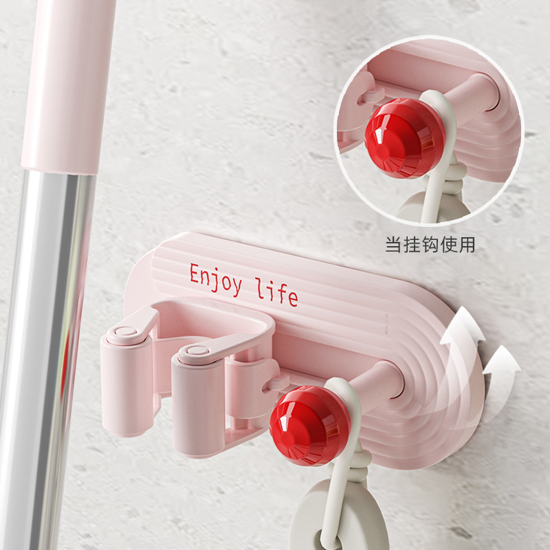 Creative Color Matching Mop Clip Punch-free Mop Hook Bathroom Broom Mop Storage Rack