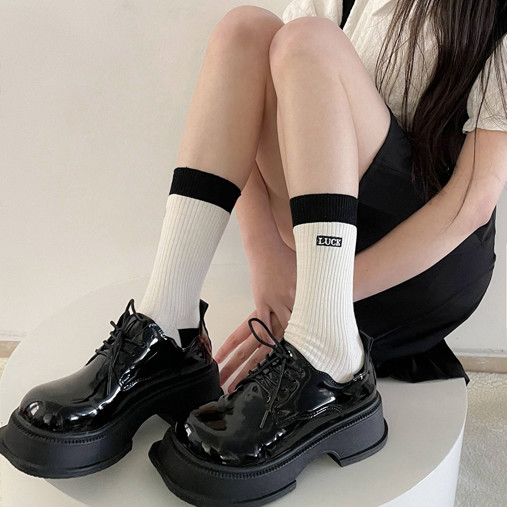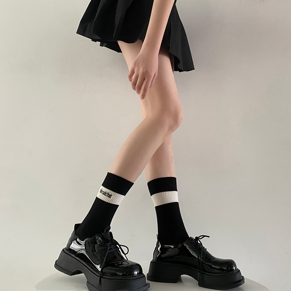 Embroidered Letters Black And White Short Tube Socks For Womeny Retro Slim Japanese JKSocks Spring And Summer Thin