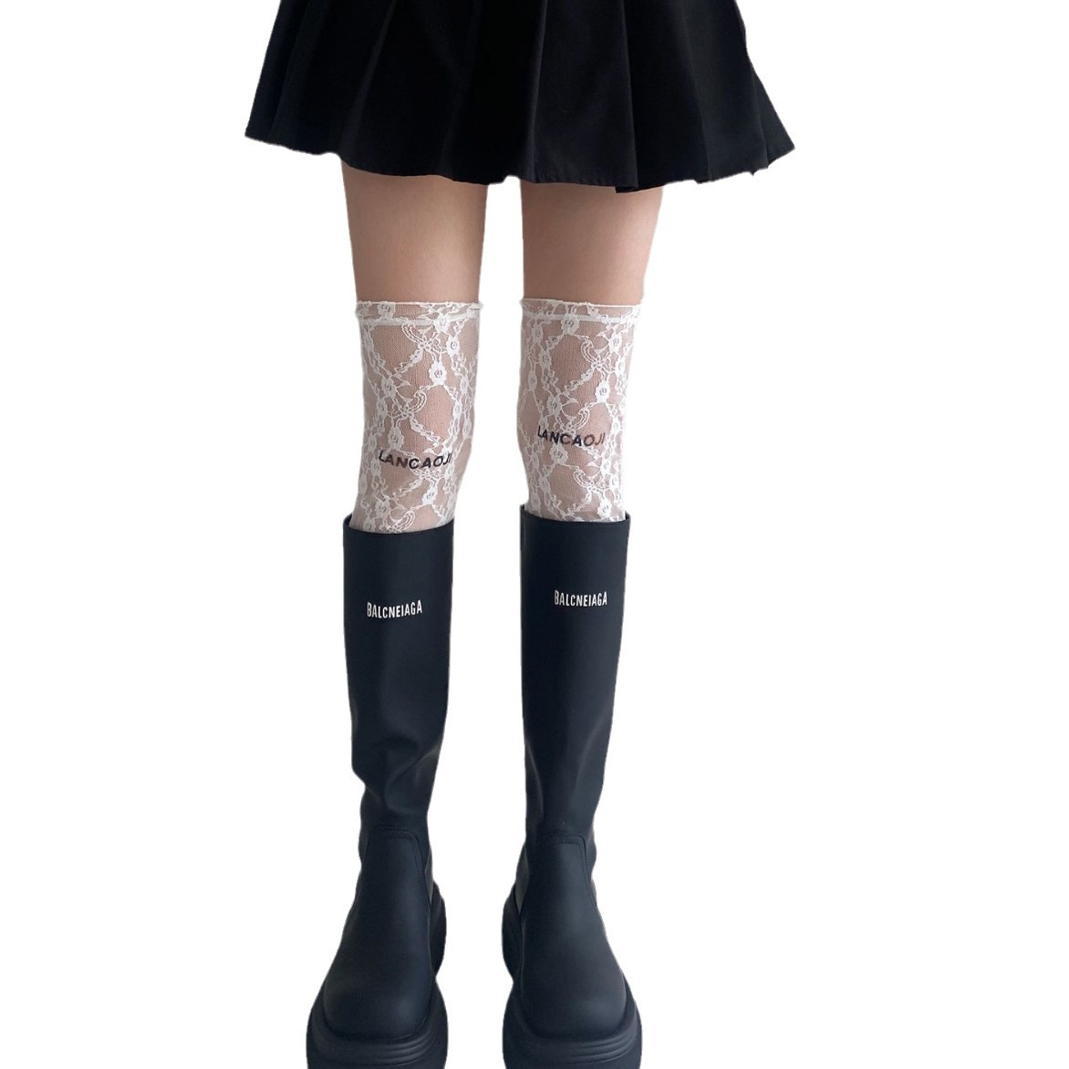 Spring And Autumn Letter Embroidery Lace Stockings Pile Of Calf Socks Women's Over-the-Knee High Socks Boots Socks