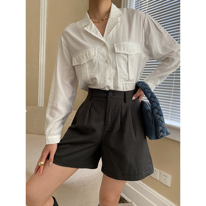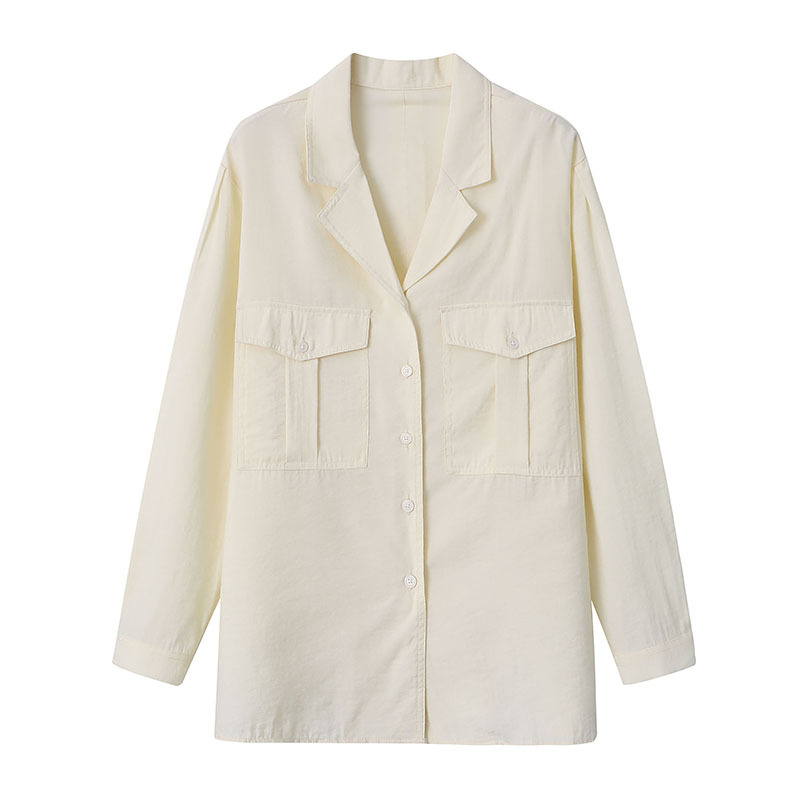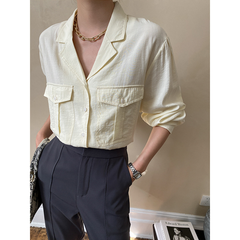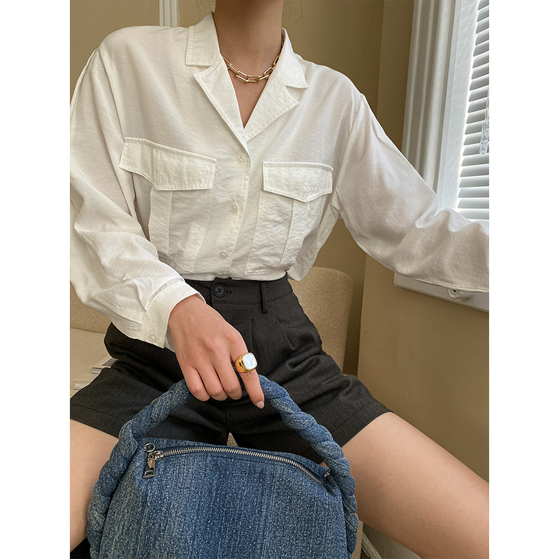 Sinan Paper Texture French Retro Lapel Large Pocket Shirt Design Early Spring SN3756
