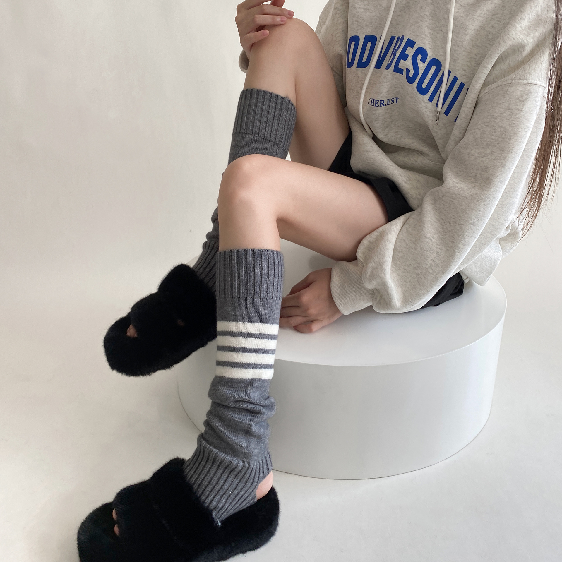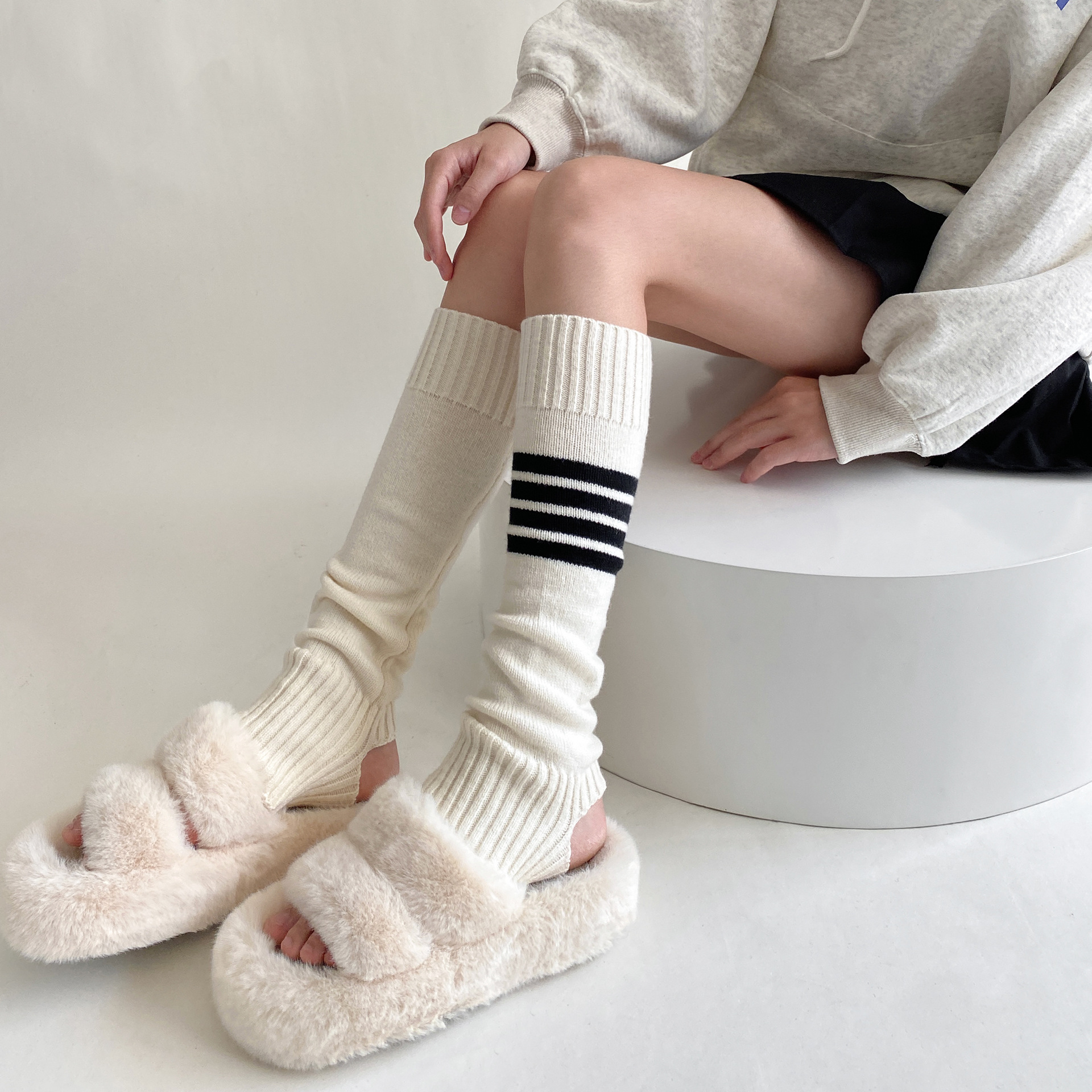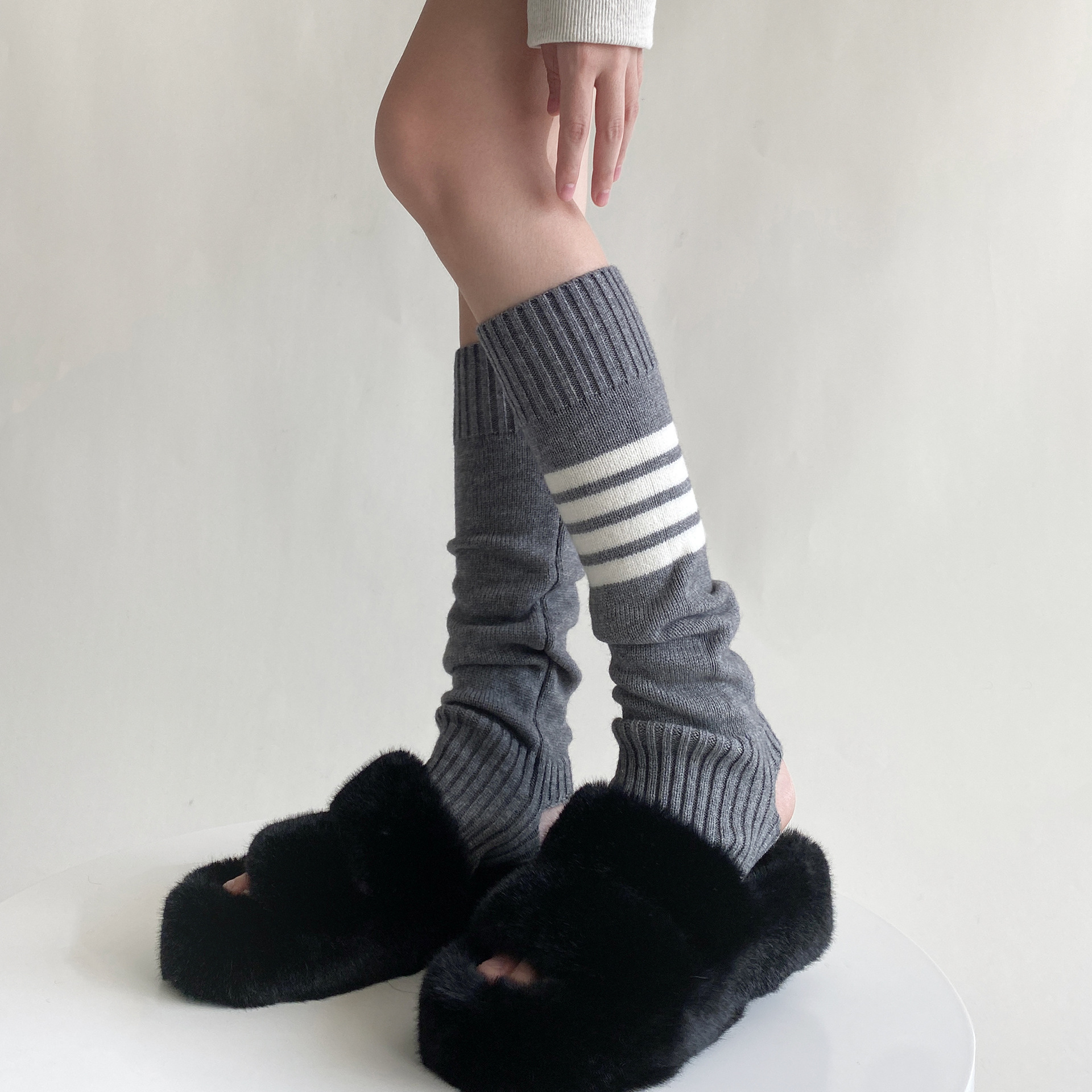 23 Autumn And Winter Show TBSocks Knitted Four-bar Slim Warm Temperament Pile Stepping Leg Covery Sleeves Korean Style