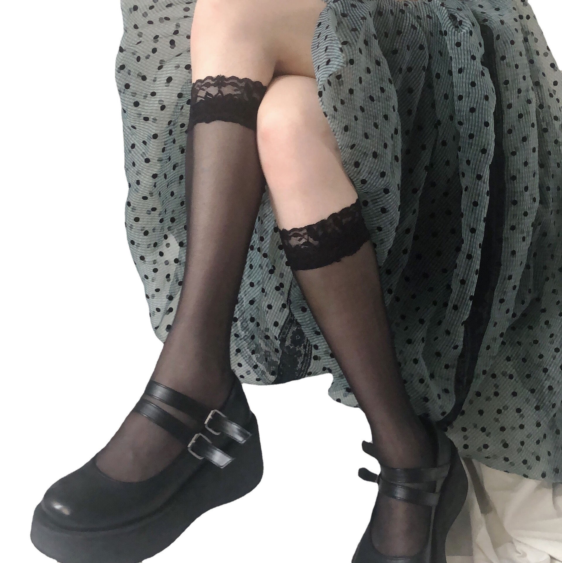 Summer Ultra-thin Transparent Mid-tube Lace Shuiii Calf Socks Classic All-match Jk Stockings Women
