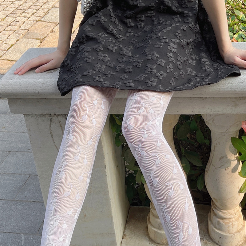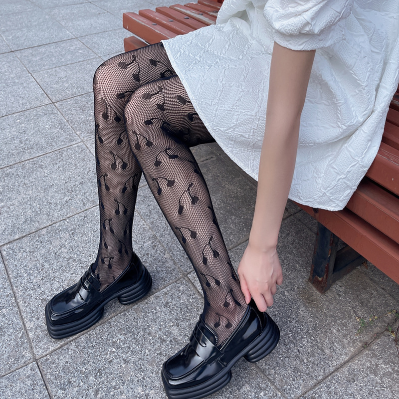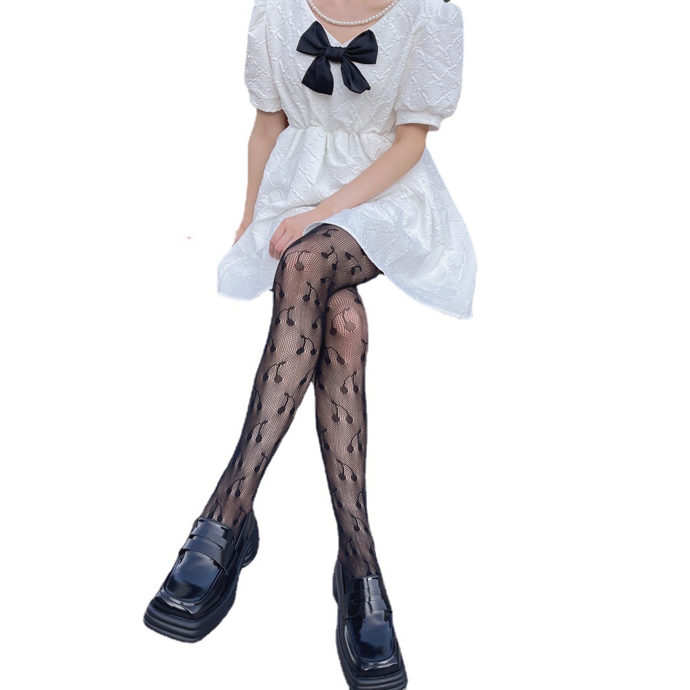 Dark Style White Cute Cherry Jacquard Sexy Hollow Fishnet Stockings Bottoming Pantyhose Black Stockings JK