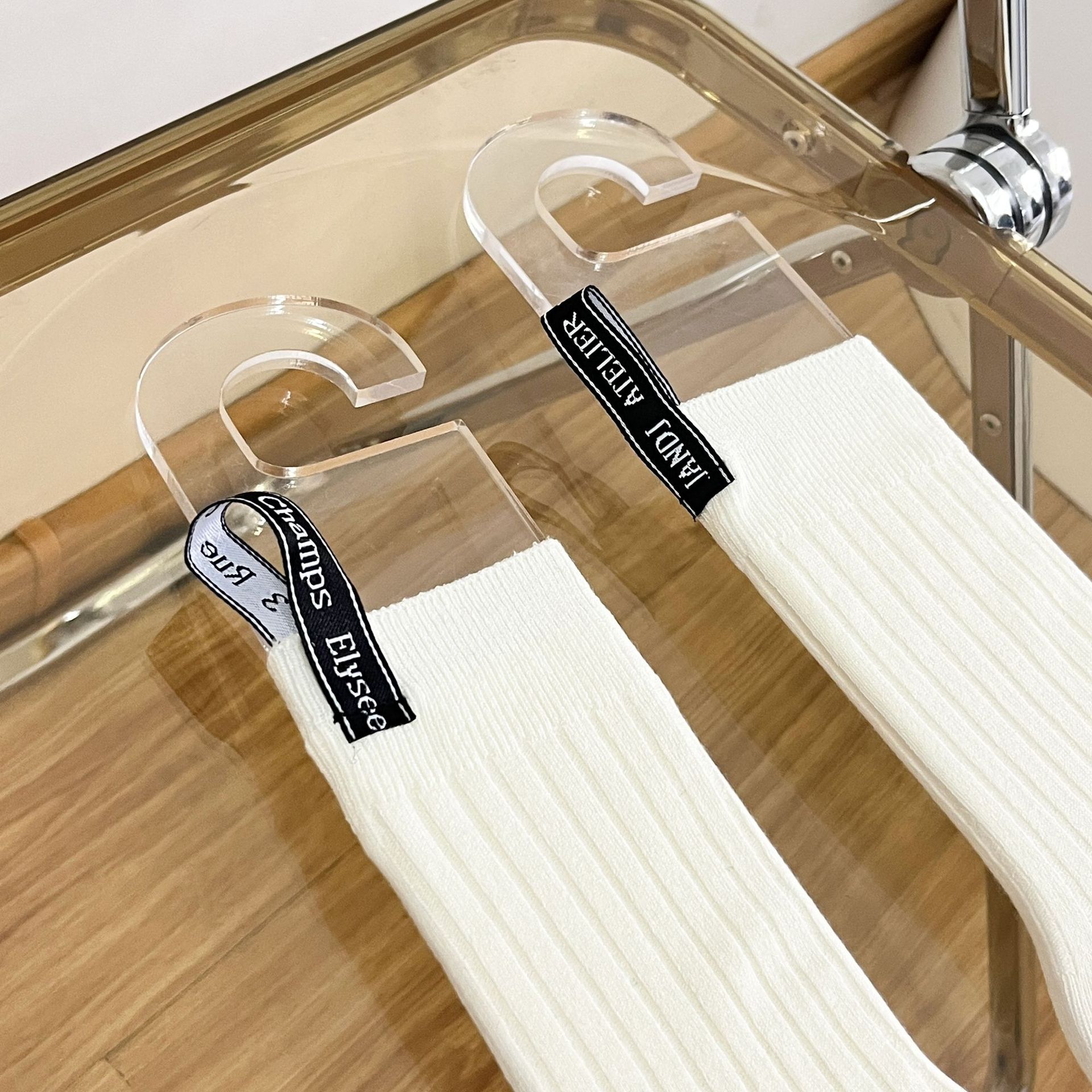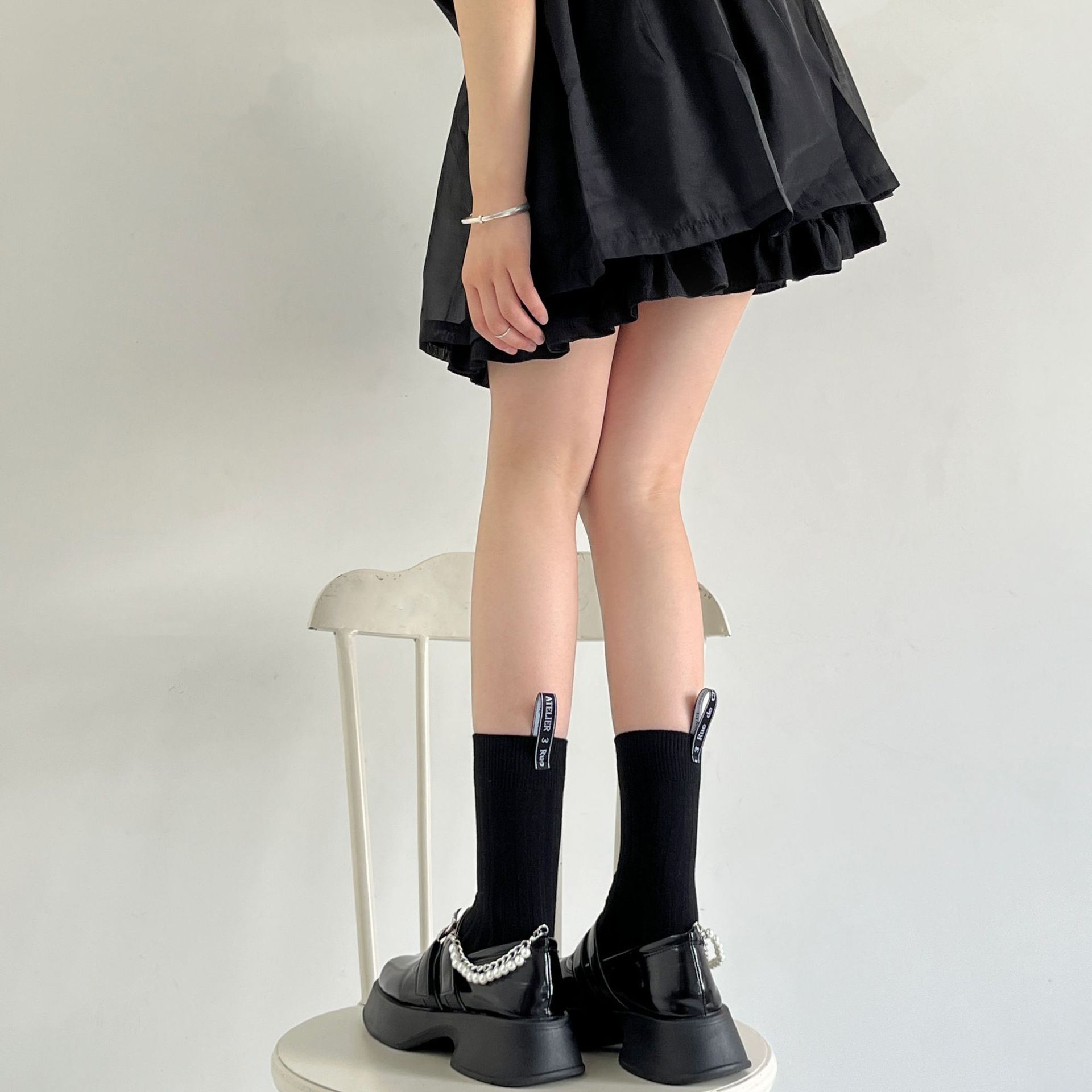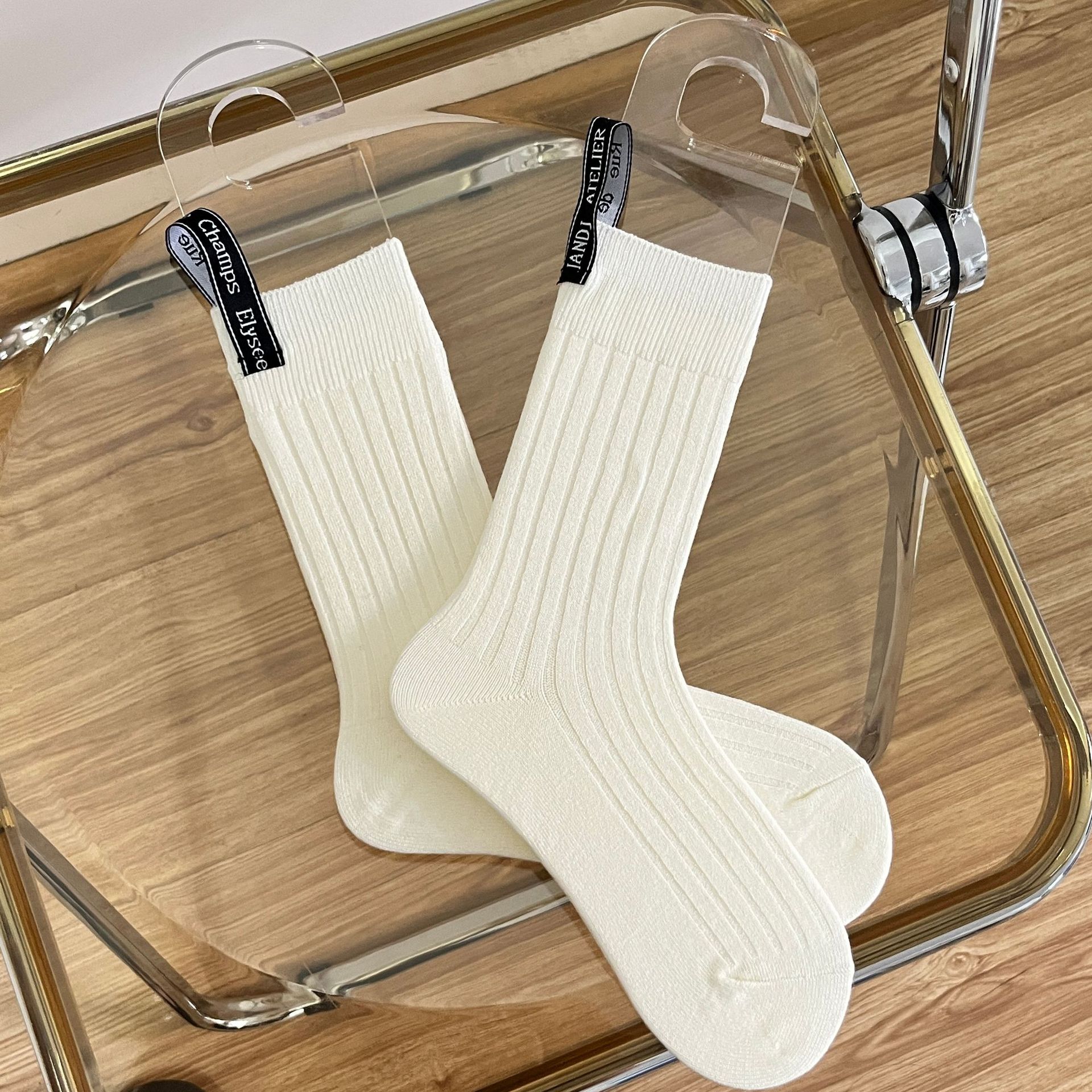 Style Simple Black And White Mid-tube Socks Short Socks Thick Striped Cotton Socks Cloth Label Calf Socks Girls