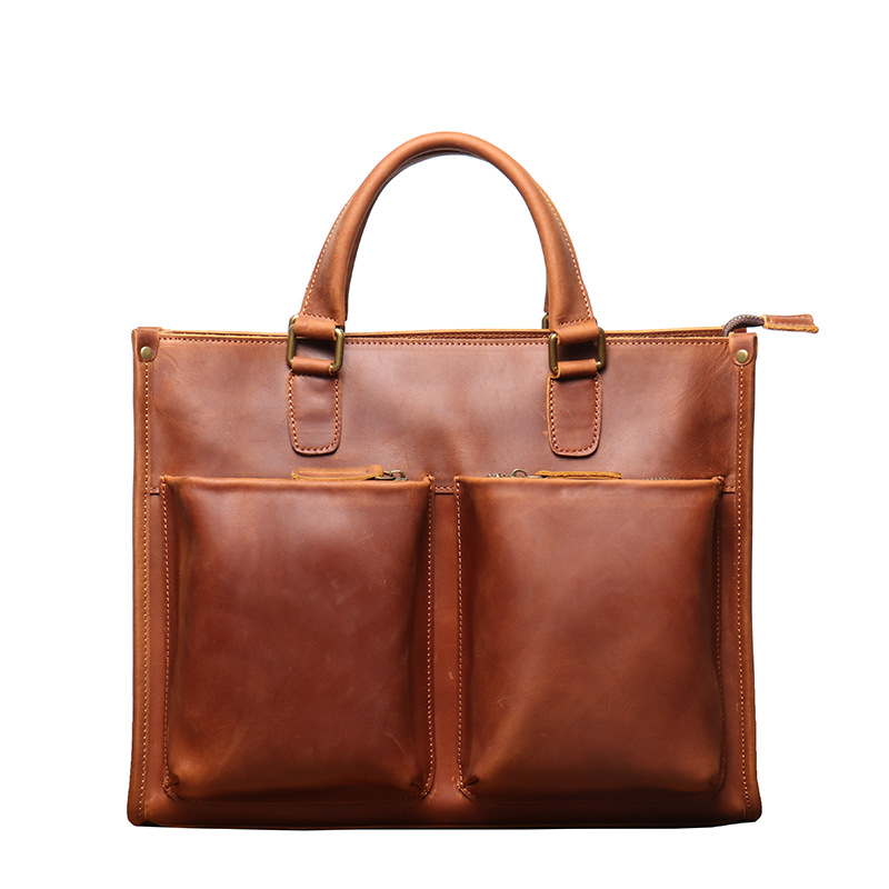Retro Fashion Men's Genuine Leather Laptop Bag Crazy Horse Leather Handmade Shoulder Crossbody Bag Large Capacity Briefcase