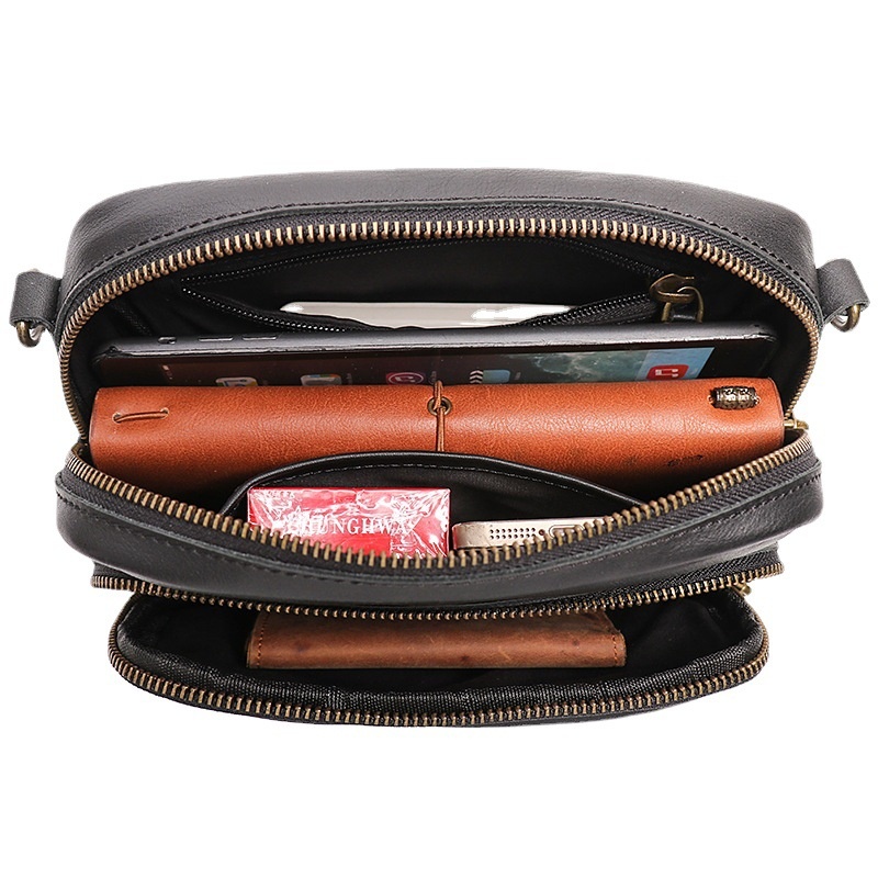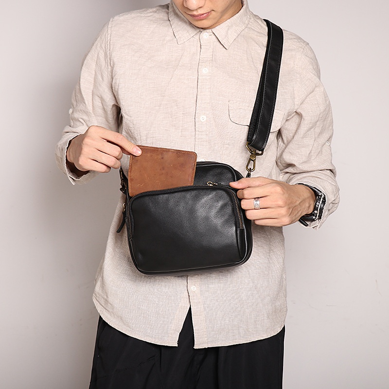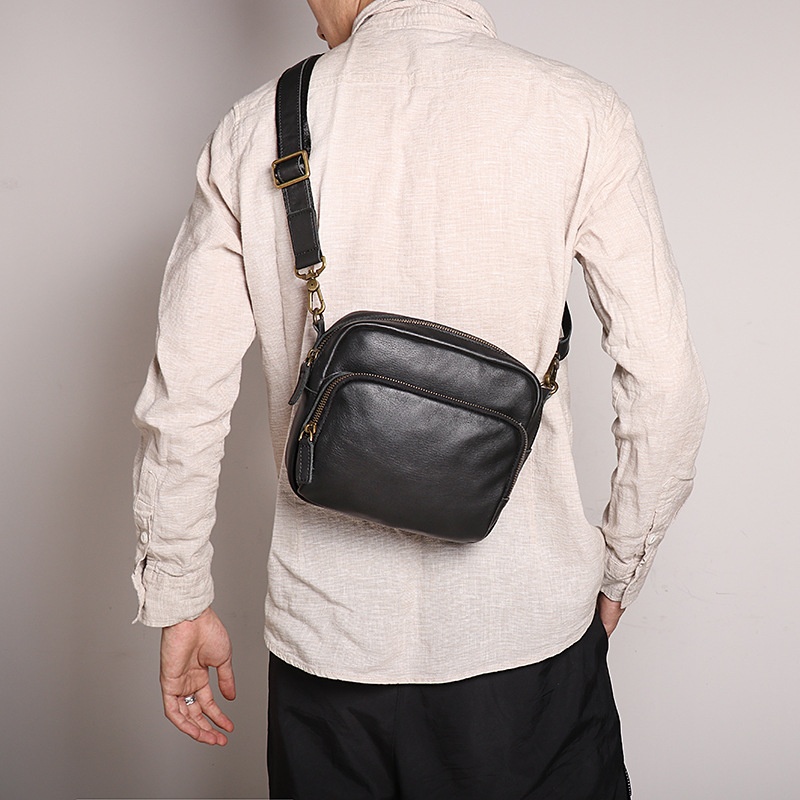 Luojia Genuine Leather Men's Bag Cowhide Men's Shoulder Bag Wearing Belt Casual Waist Bag Large Capacity Messenger Bag