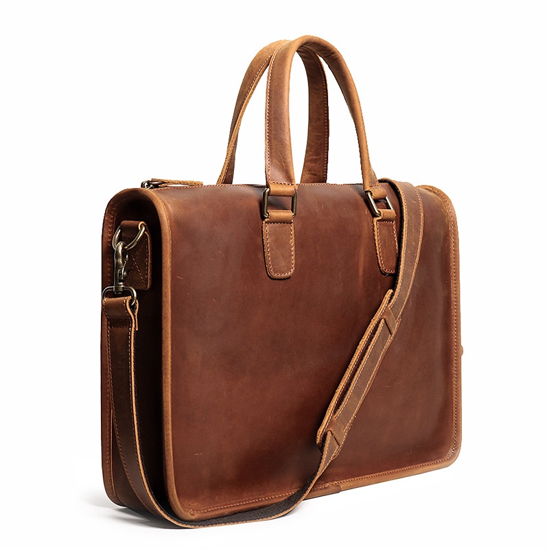 Crazy Horse Leather Hand-held Briefcase Cowhide Shoulder Messenger Computer Bag Large Capacity Genuine Leather Document Bag Men