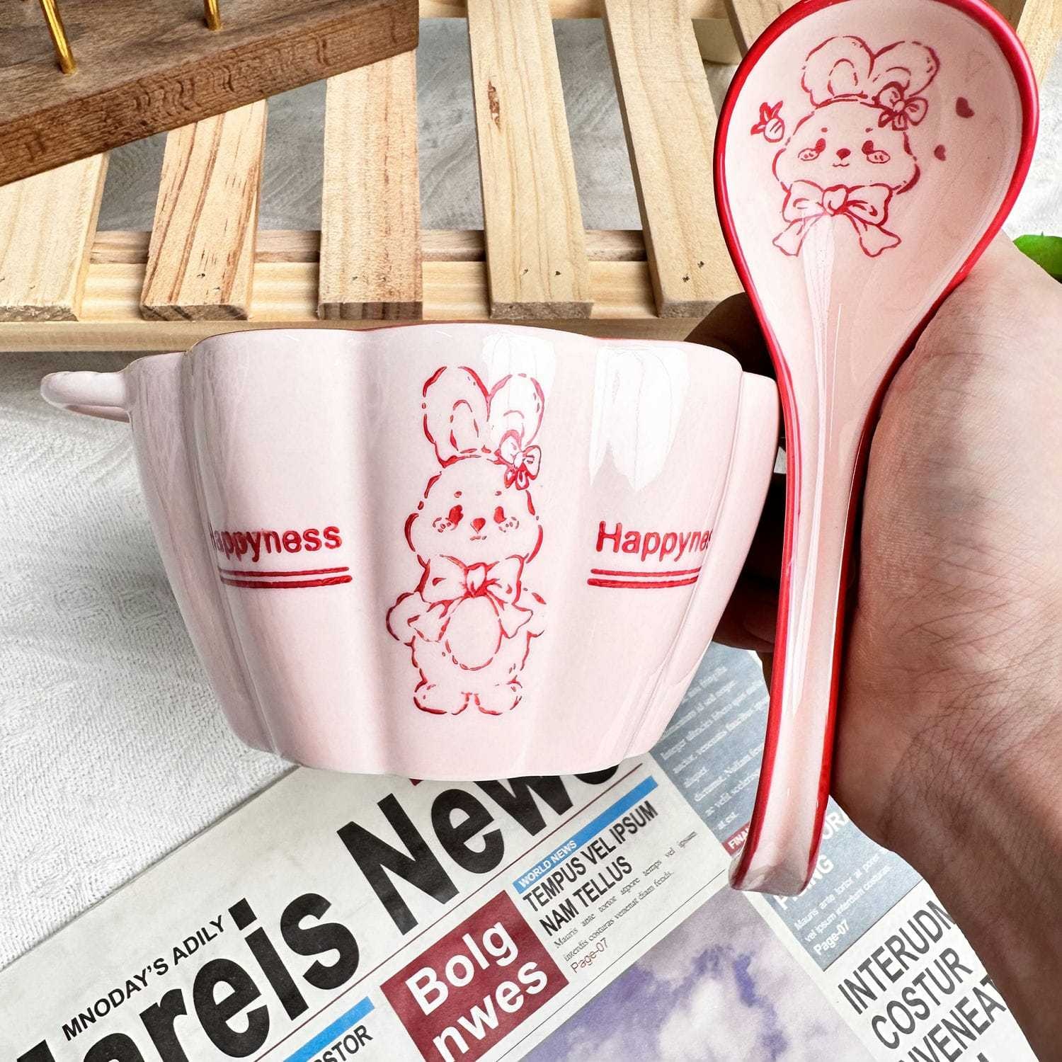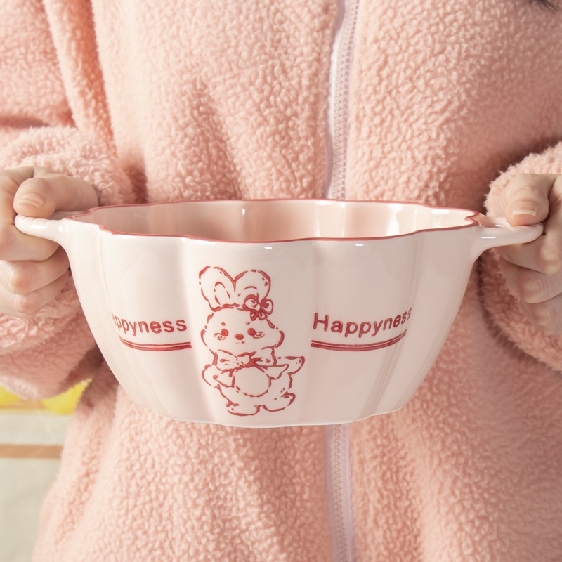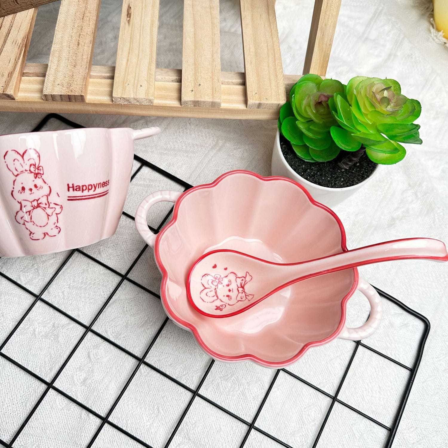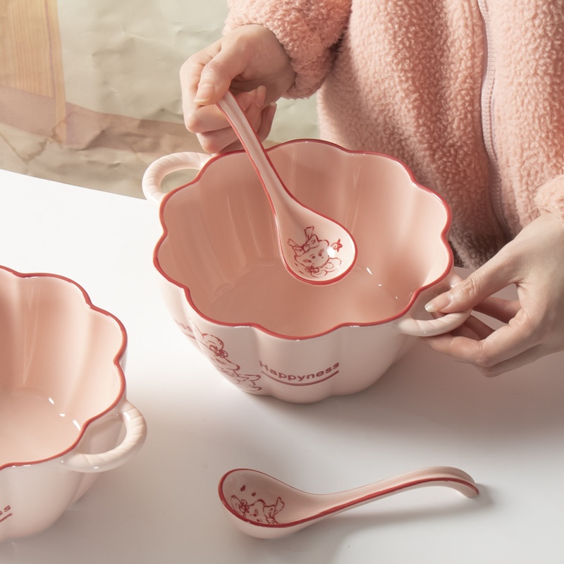 High-value Ceramic Tableware,Large And Small Double-ear Bowls With Spoons,Cute And Lovely Style,Girly Ceramic Tableware,Sweet