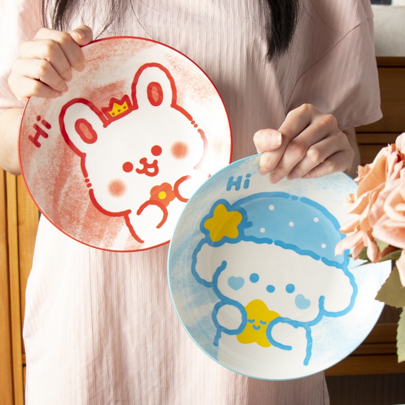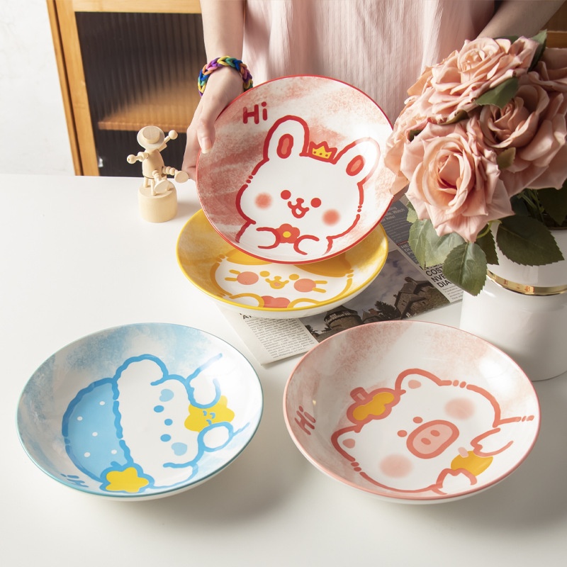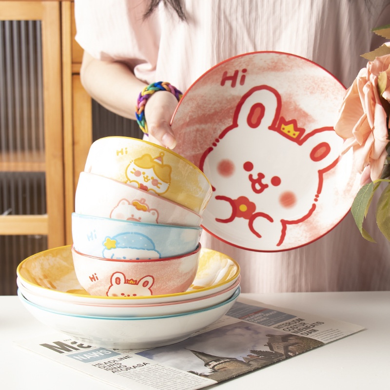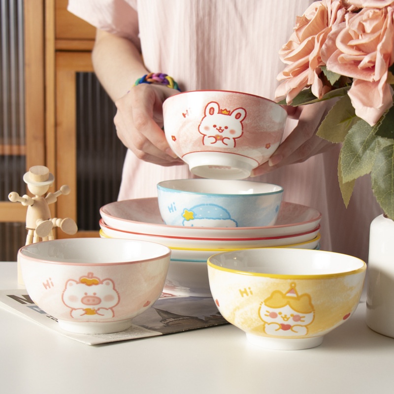 Animal Party Underglaze Color Tableware Household Rice Bowl High Value Hand-painted Underglaze Color Ceramic Bowl Snack Plate