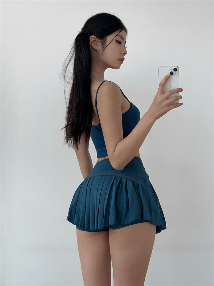 Fitness Short Skirt Anti-exposure Fake Two-piece Sports Skirt Solid Color Pleated Skirt Training Suit Quick-drying Running Skirt1030