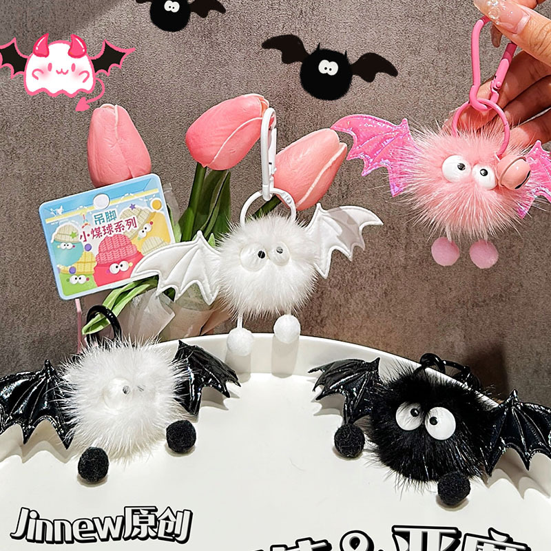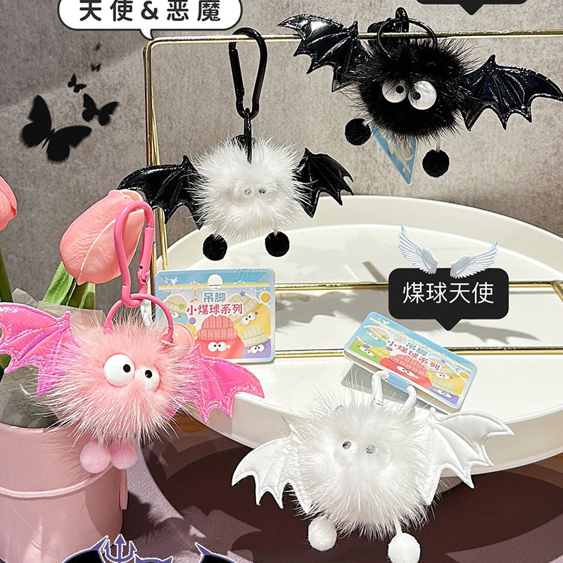 Jin Mink Fur Angel Devil Small Coal Ball Pendant Light Luxury Key Chain Bag Ornaments Creative Gift