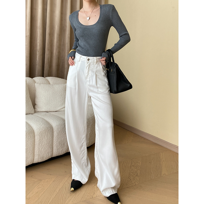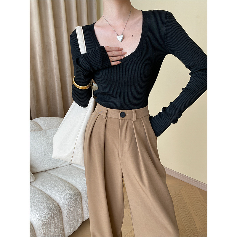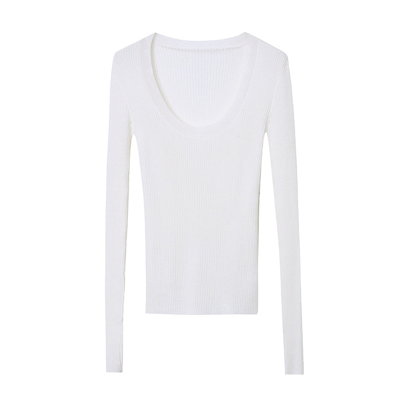 Sinan Fashionable Paper Man Early Autumn French Style Large U-neck Slim Waist Slim Sweater Bottoming Sweater SN3948