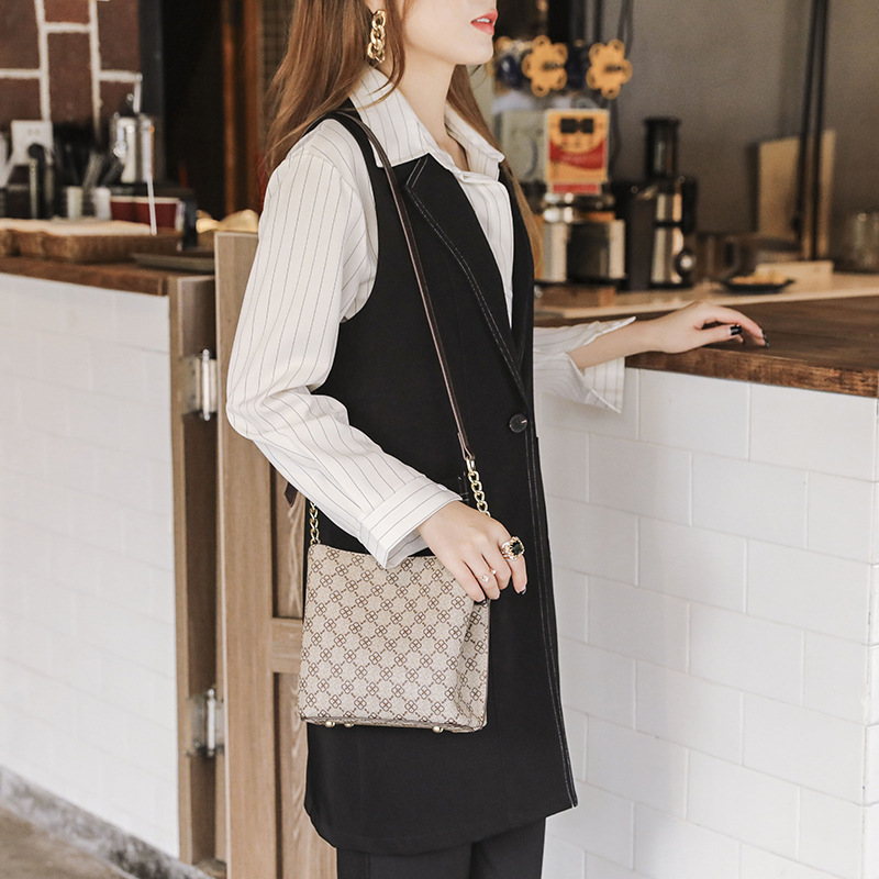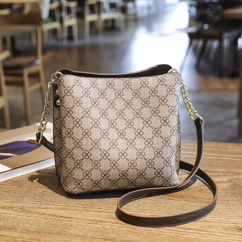Spring And Summer Retro Printed Bucket Bag Women's European And American Fashion Large Capacity One Shoulder Crossbody Chain Bag