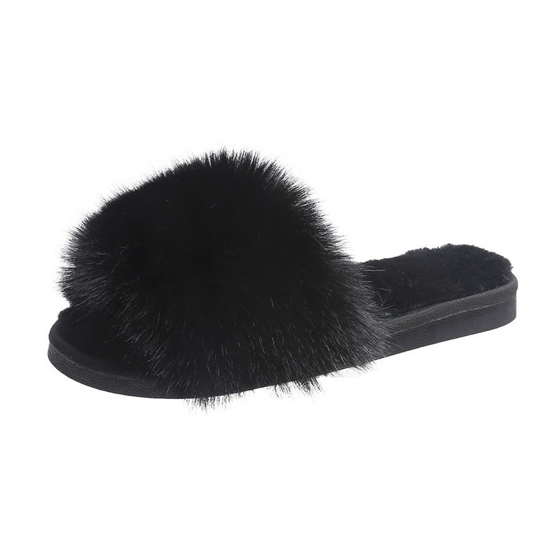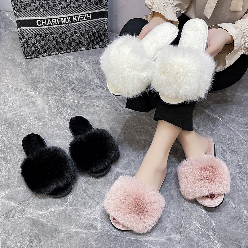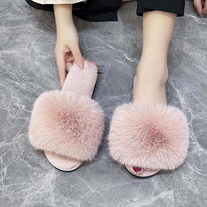 Furry Slippers For Women To Wear Outside In Autumn And Winter Korean Version Thick Warm Flat Bottom Women's Slippers Internet Celebrity Home