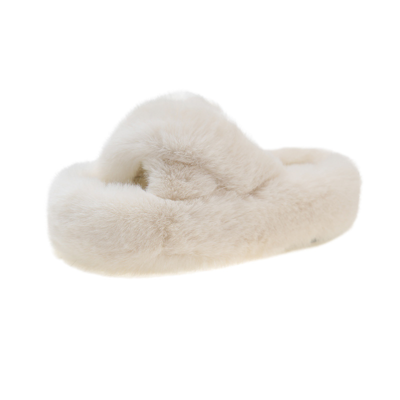Autumn And Winter Korean Fashion Thick-soled Fur Slippers Cross Home Cotton Slippers For Outdoor Wear High-end Large-size Slippers For Women