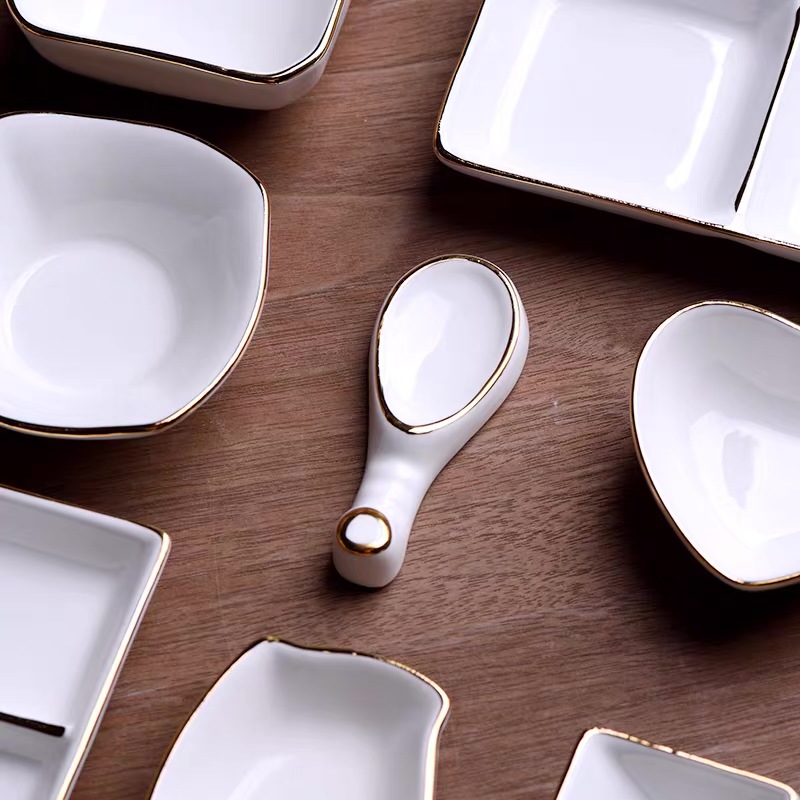 Gold-rimmed Tableware Ceramic Small Dish Mustard Dish Creative Seasoning Dish Dipped In Oil Household Vinegar Dish Hotel Irregular Chopstick Holder