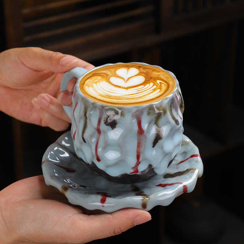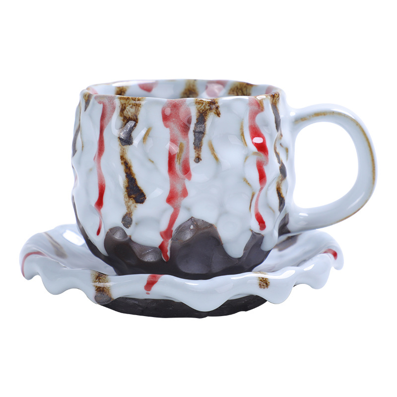Hammer Pattern Coffee Cup And Saucer Set Japanese Retro Stoare Mug Creative Ceramic Tea Cup Water Cup Coffee