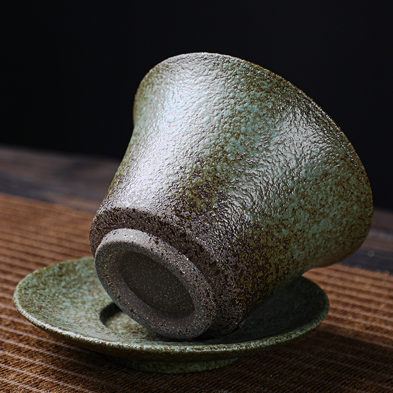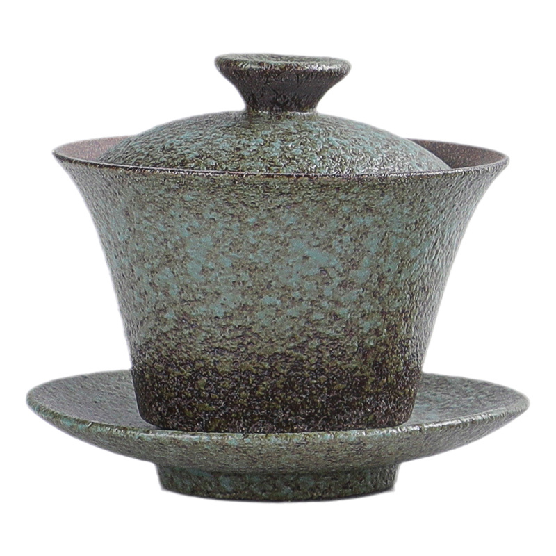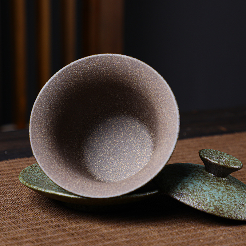 Japanese-style Stoare Sancai Covered Bowl Tea Cup Single Retro Handmade Ceramic Kung Fu Tea Set Large Hand-caught Teapot Tea Bowl