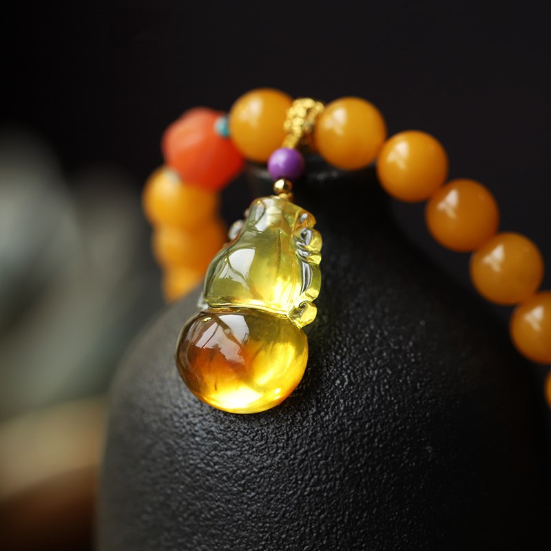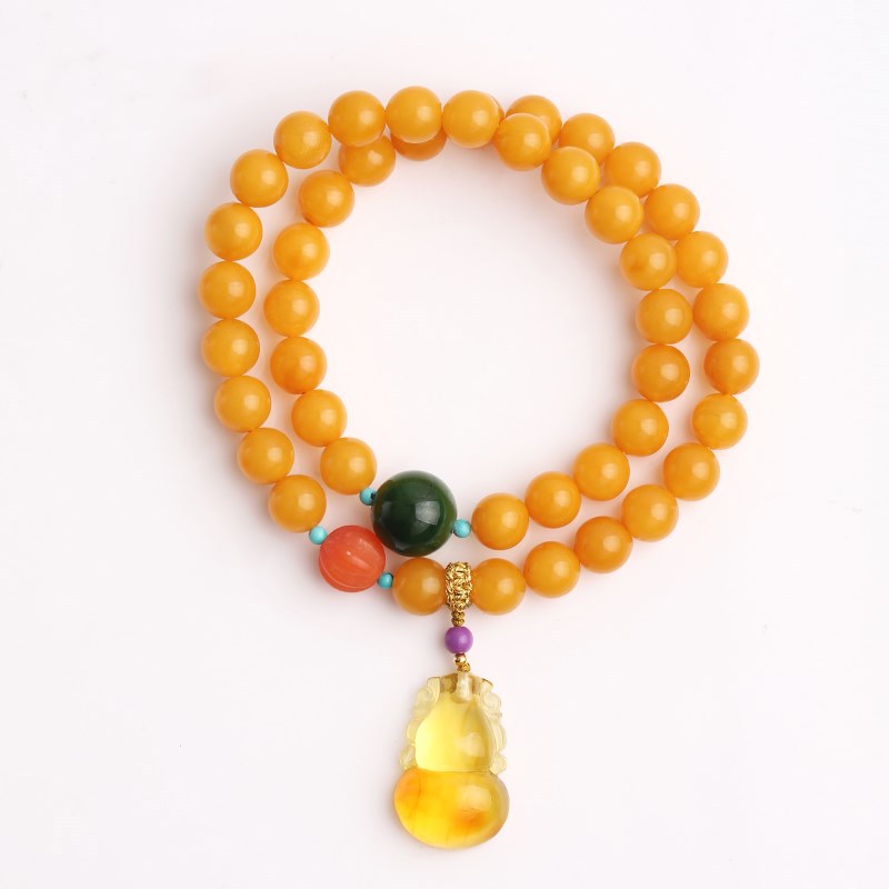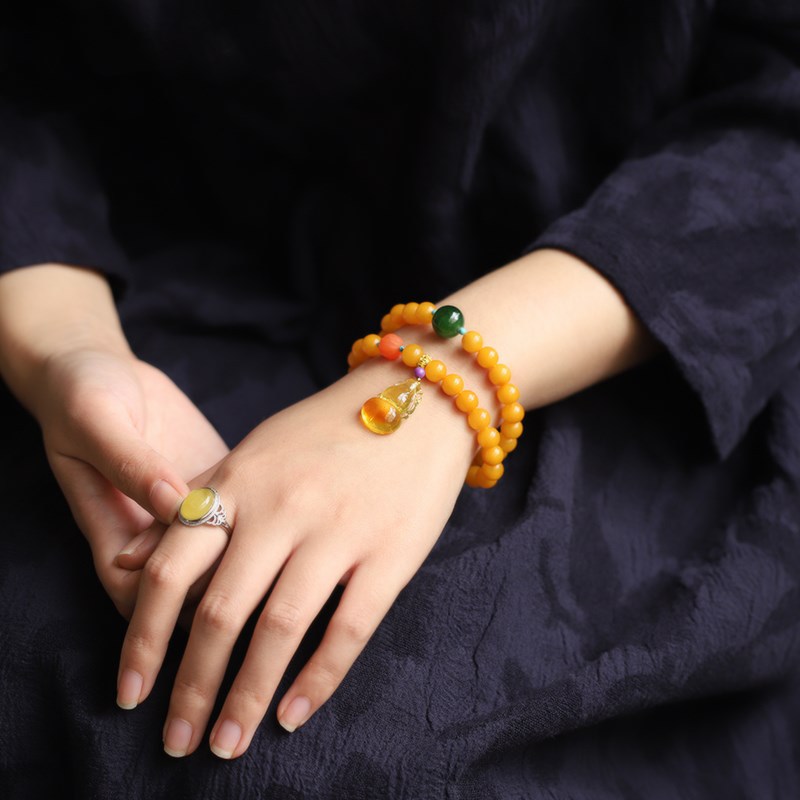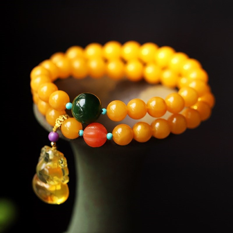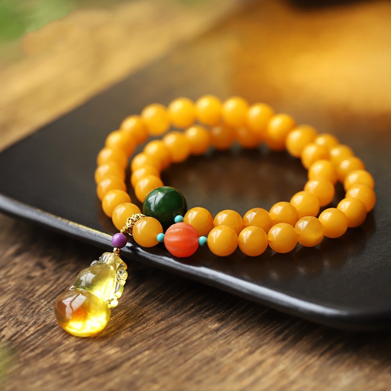 Natural Chicken Oil Yellow Beeswax Buddha Beads Multi-circle Bracelet7mm Original DIYWith South Red Gourd Jewelry Bracelet Female