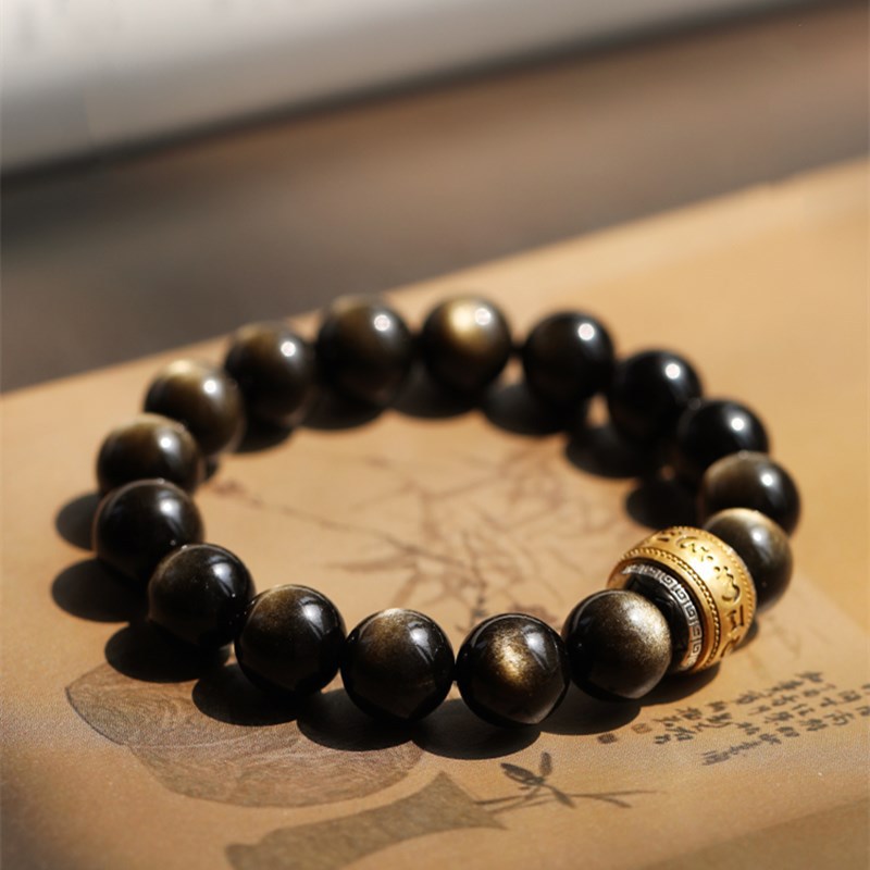 Obsidian Gold Obsidian Bracelet Original DIYMatching Six-Character Mantra Men's Simple And Elegant Versatile