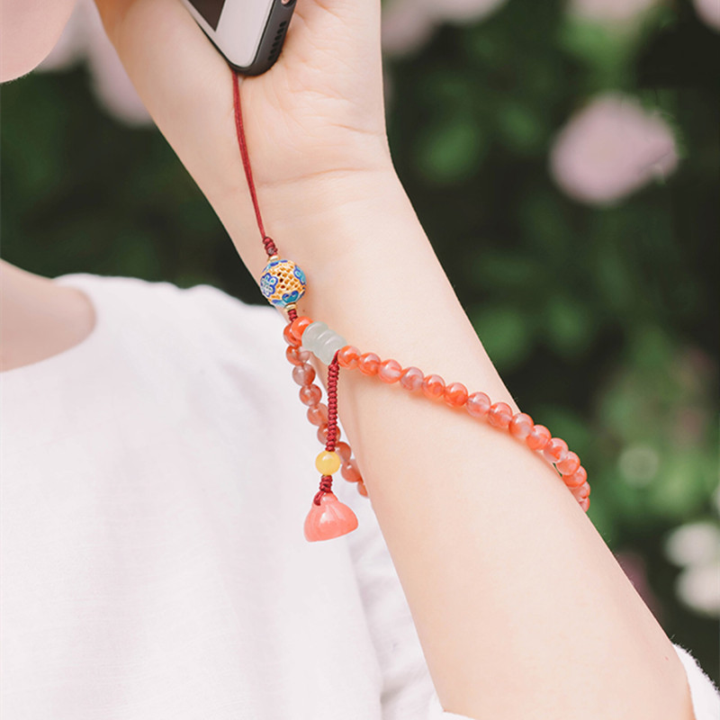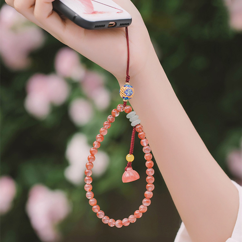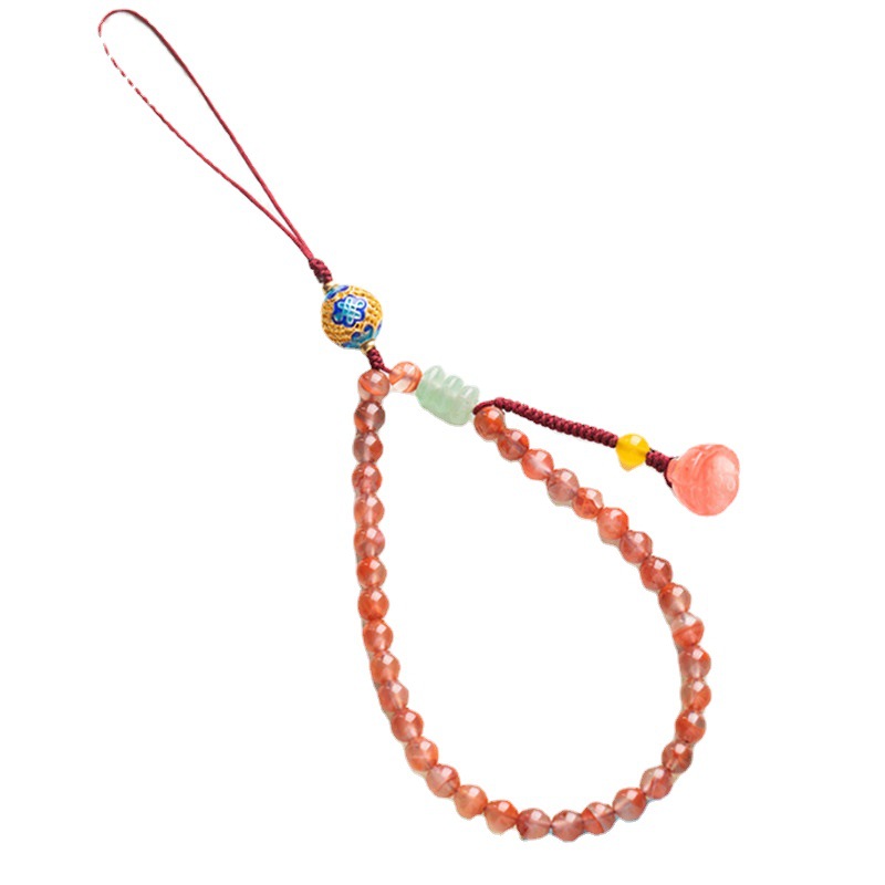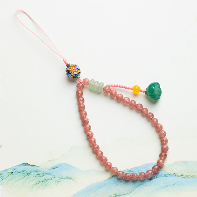 Retro Art Pendant6mm South Red Agate Mobile Phone Chain DIYFemale Strawberry Crystal Mobile Phone Lanyard Simple And Fresh