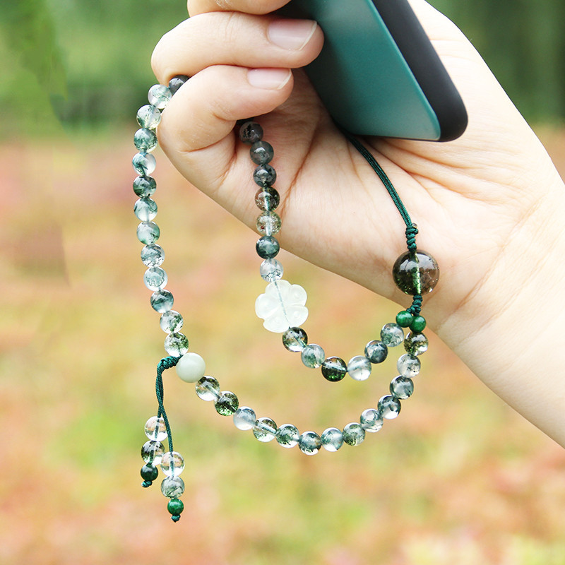Water Grass Agate Burst Crystal White Crystal Mobile Phone Chain6mm DIYFemale Bodhi Root Jade Accessories Simple Jewelry