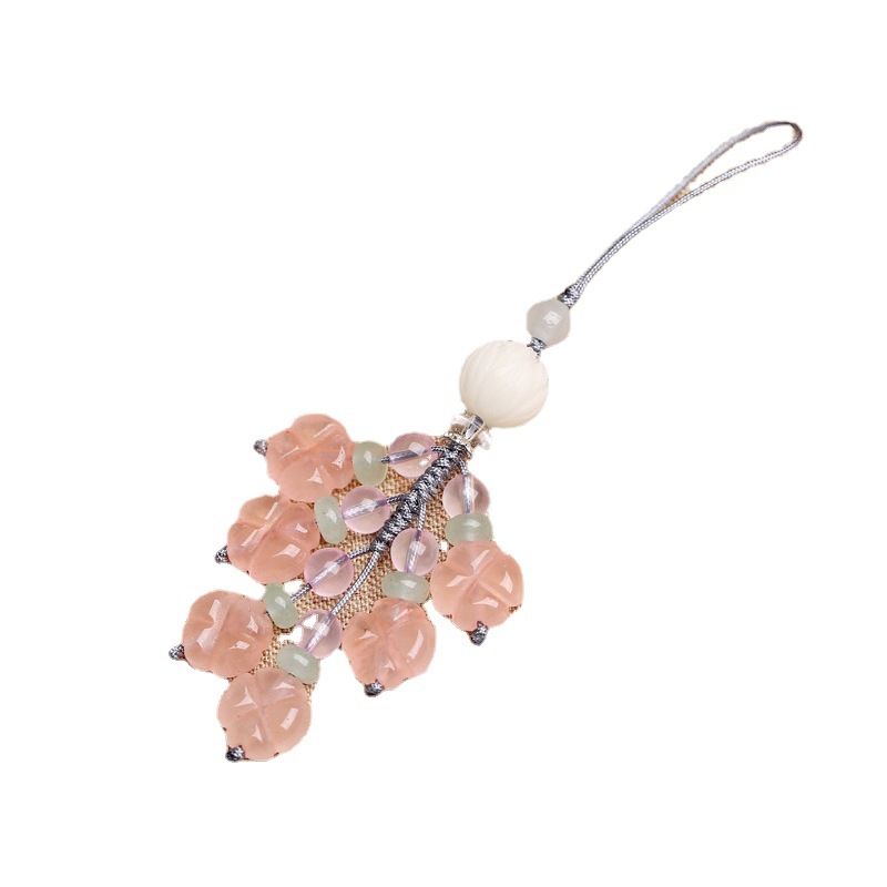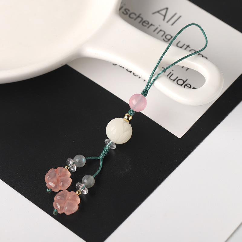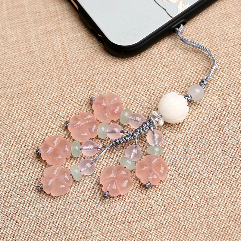 Rose Quartz Four-Leaf Clover12 MMMobile Phone Pendant Creative All-match Decoration Cute Female Personality Pendant Jewelry Necklace Bag Hanging