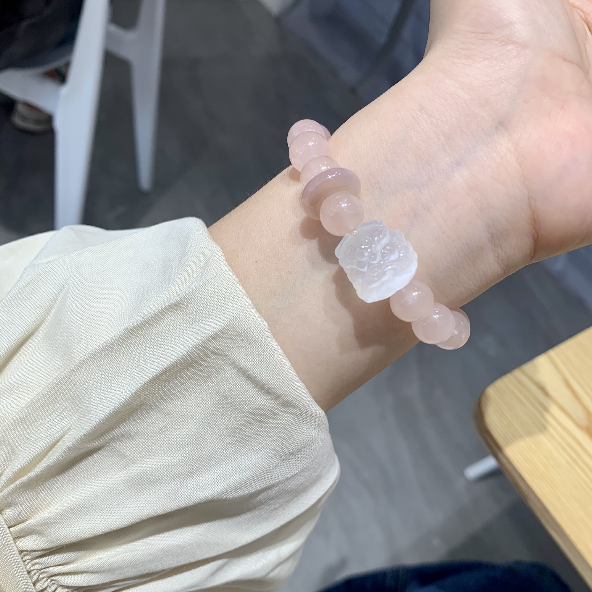 23 Natural Horse Pink Crystal Bracelet Female Girlfriends Gift Awakening Lion Scarlet Agate Bracelet Chinese Style Jewelry