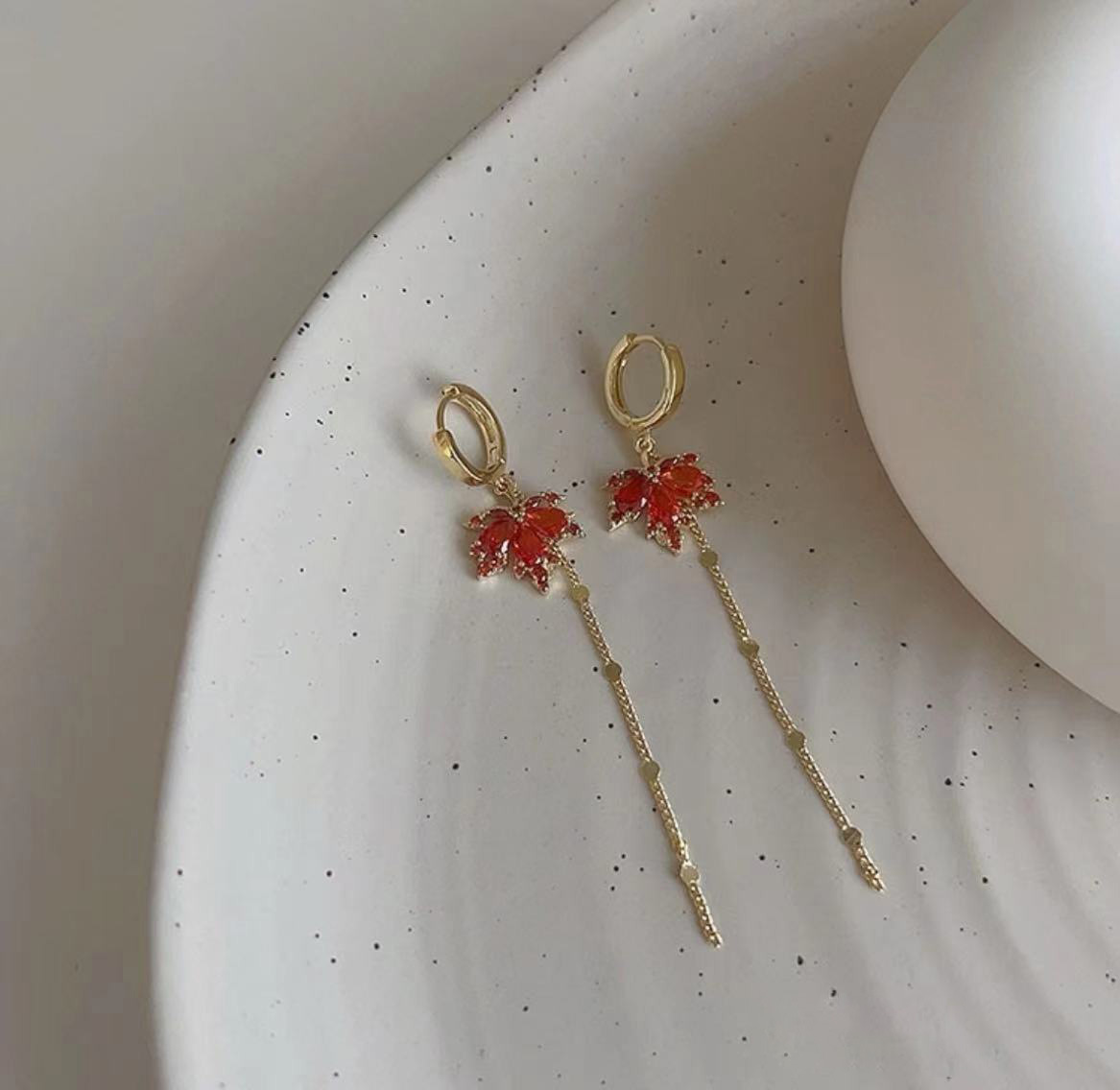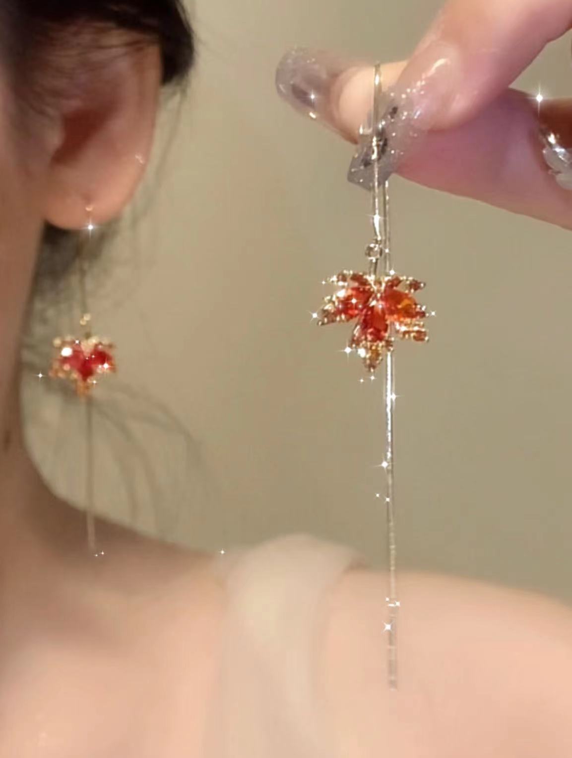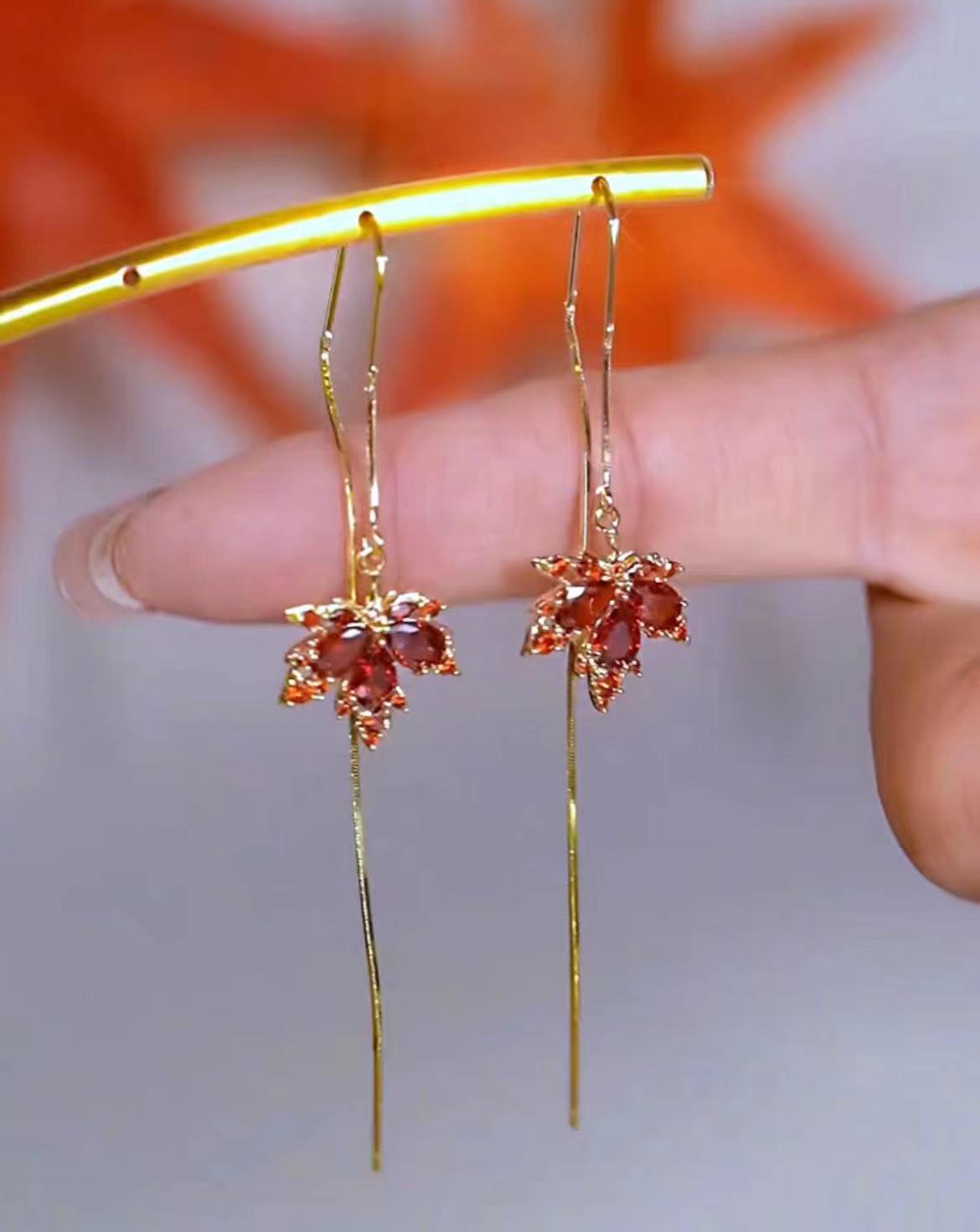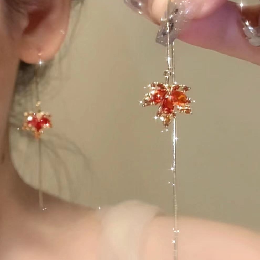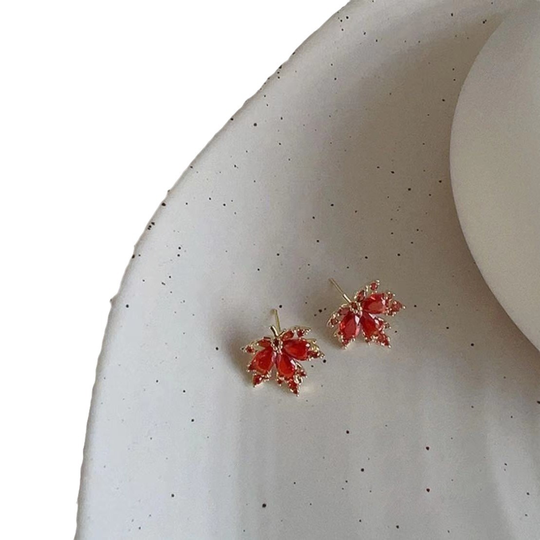 Melancholy Maple Leaf Earrings,High-grade Zircon Female Niche Design,Retro Personality,Simple And Versatile Temperament Earrings