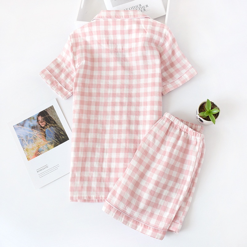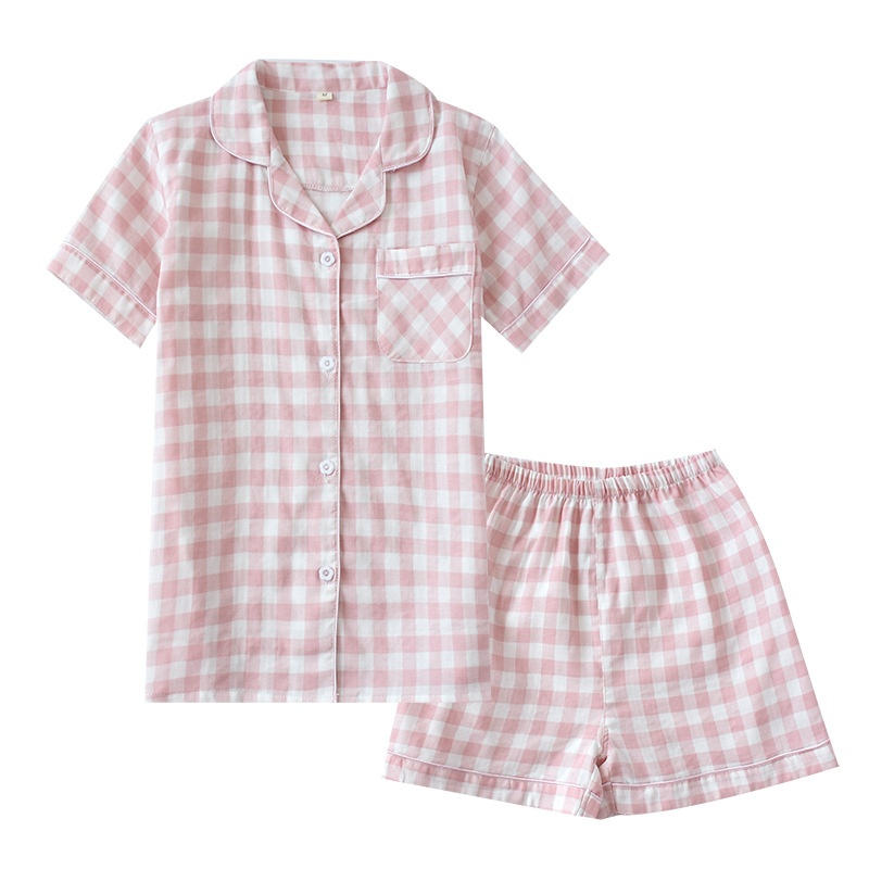 Summer Pajamas Couple Summer Japanese Cotton Gauze Home Clothes Women's Thin Men's Casual Short Sleeve Shorts Set