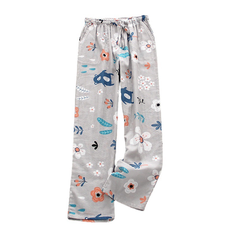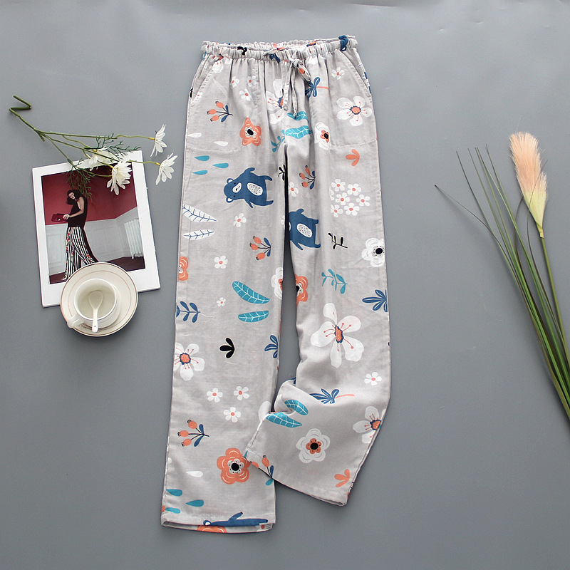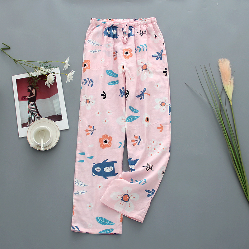Double-layer Gauze Home Pajamas Ladies Cartoon Cotton Loose Home Pants Spring And Summer Air-conditioning Pants Style