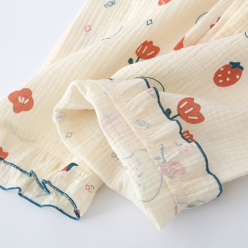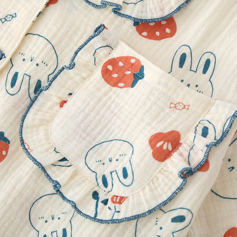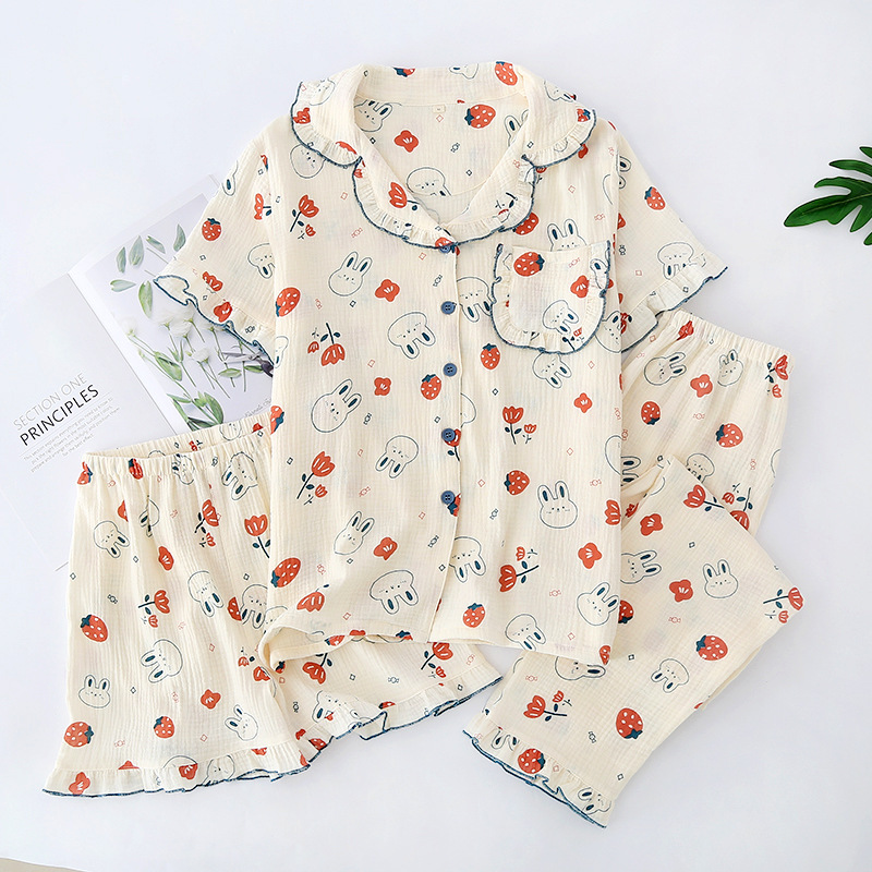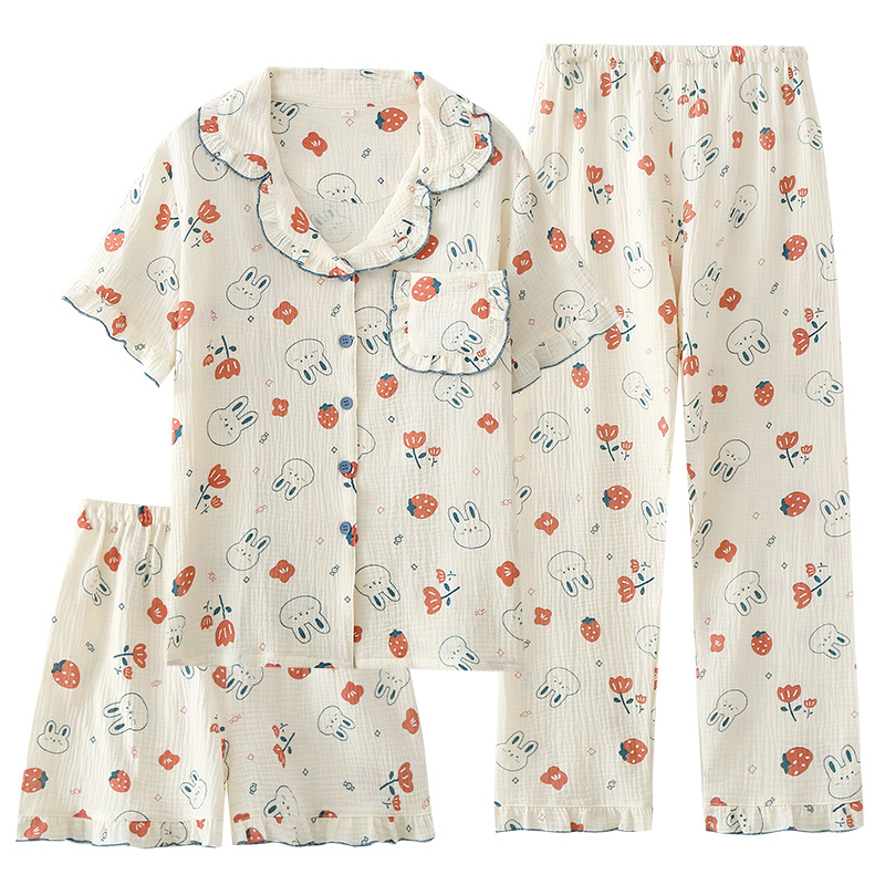 Thin Summer Pajamas Women's Cotton Yarn Rabbit Short-sleeved Trousers Shorts Suit Spring And Autumn Three-piece Suit