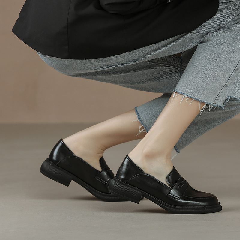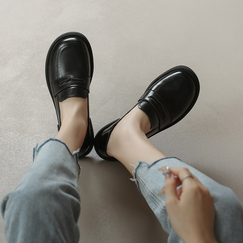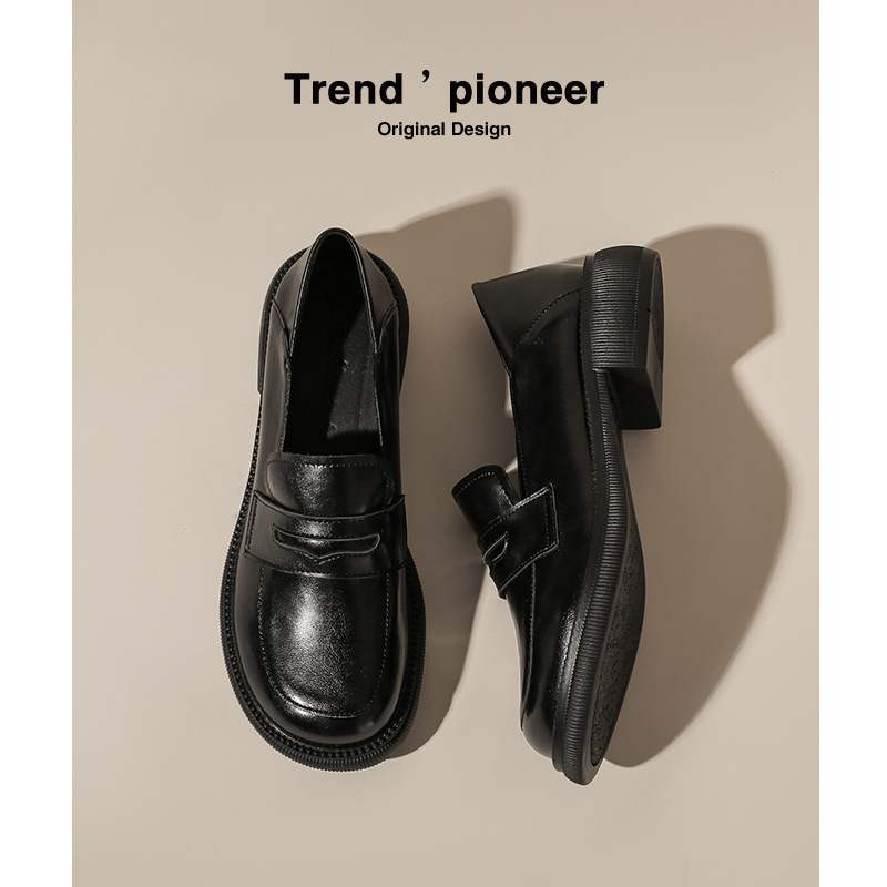 Grape Mom Studiolee Thick-soled Leather Shoes Spring And Autumn British Style Slip-on Loafers For Women