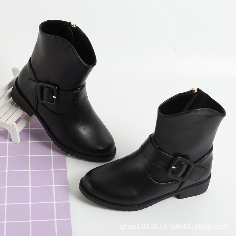 Girls Martin Boots Style Second Cotton Shoes Plus Velvet Soft Sole Children's Shoes Foreign Trade Autumn And Winter Style Little Girl Short Boots