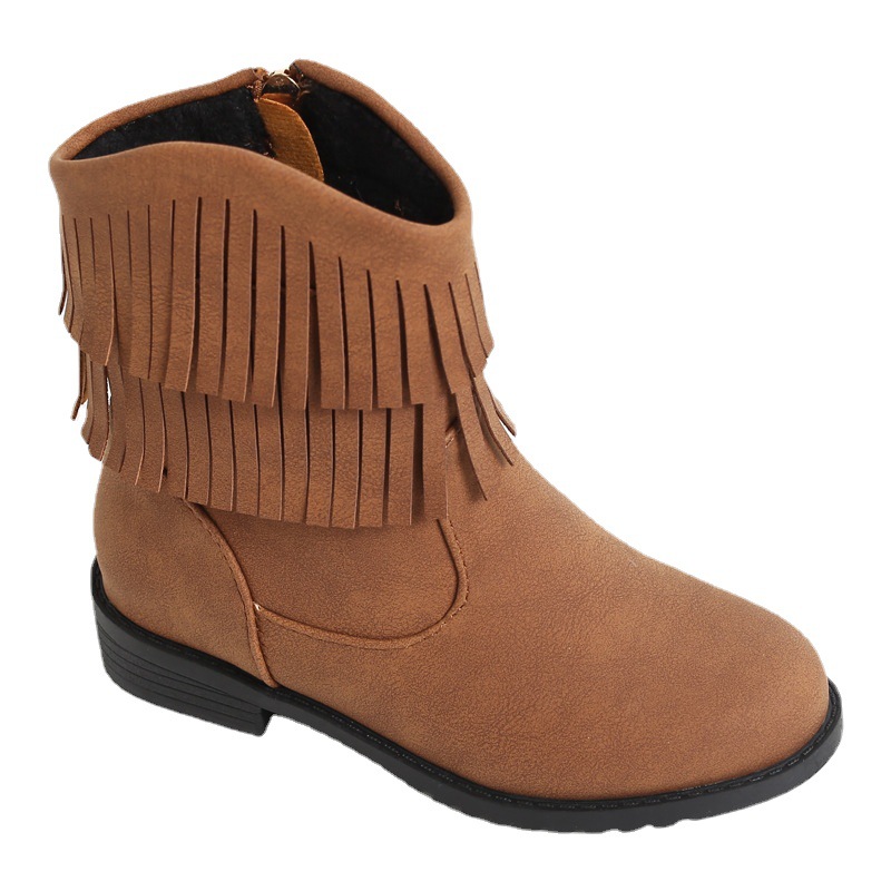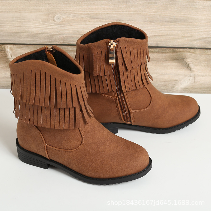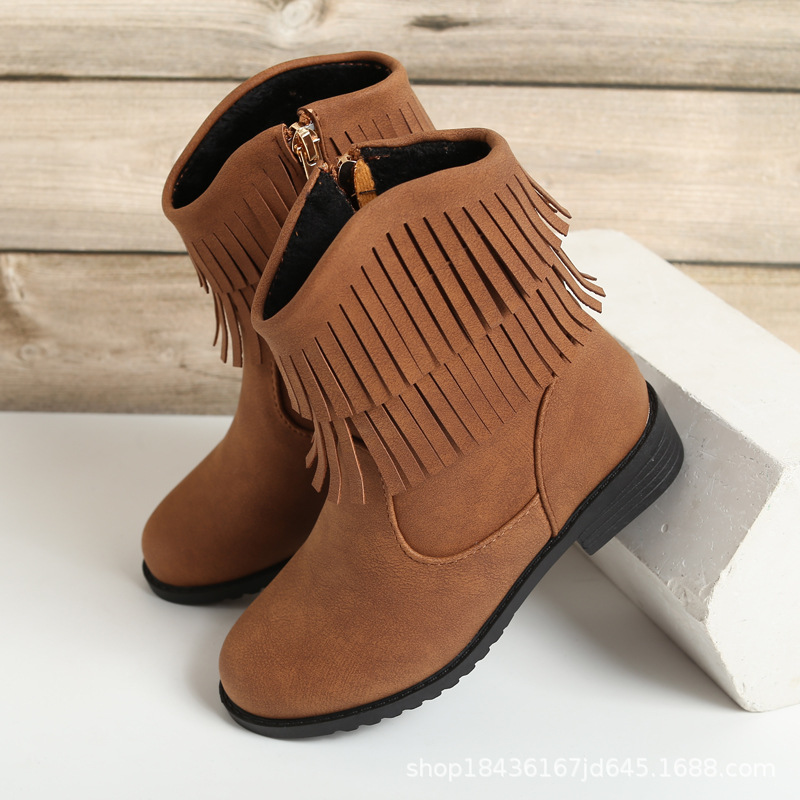 Girls Tassel Boots Baby Princess Boots Soft Bottom Children's Ankle Boots Korean Girls Cute Two Cotton Plus Velvet Primary School Students