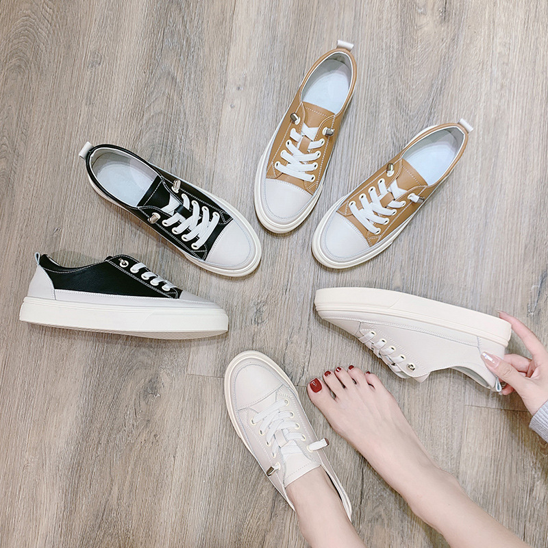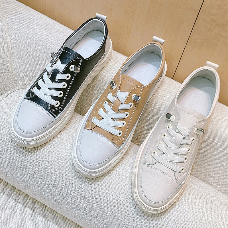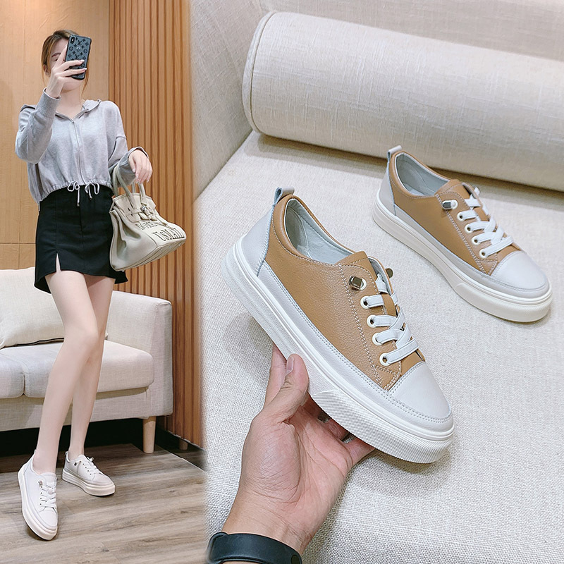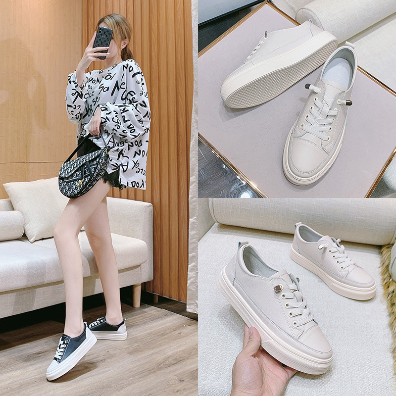 Korean Fashion Products Casual And Comfortable Autumn And Winter Internet Celebrity Color Matching Low-top Thick Bottom Genuine Leather Inner Heightening Small
