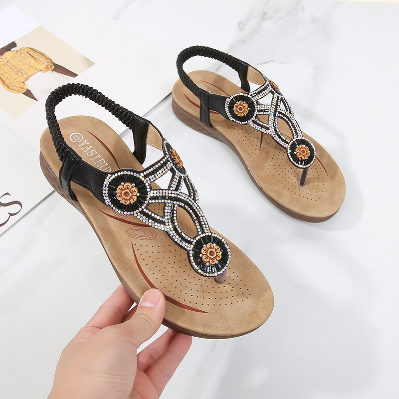 Lady Shoes Large Size Women's Shoes With Flower Pattern On The Outside,Rhinestone Sandals,Foreign Trade Flat Large Size Sandals For Women