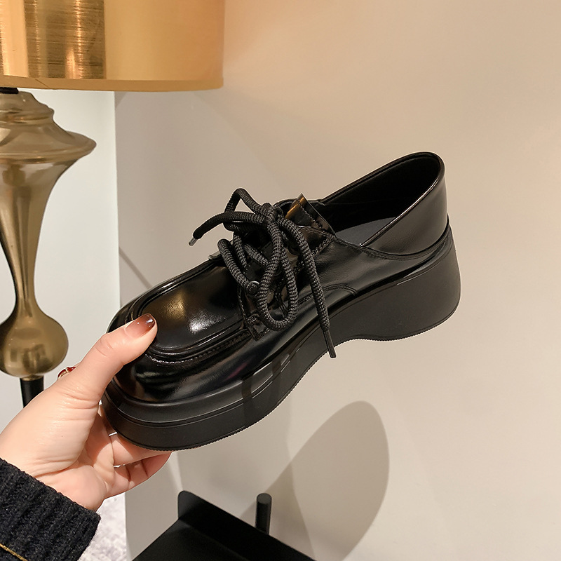 Small Leather Shoes For Women Spring All-match Shoes College Style Black Single Shoes Genuine Leather British Thick-soled Loafers