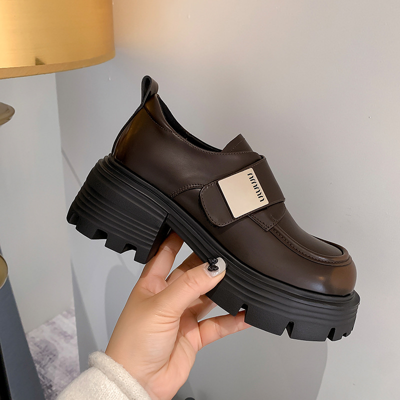 Retro Thick-soled Loafers For Women Genuine Leather Velcro Thick Heels Versatile British Style Platform Heels Small Leather Shoes