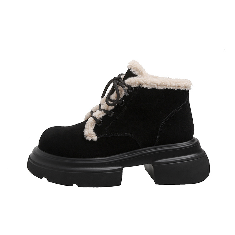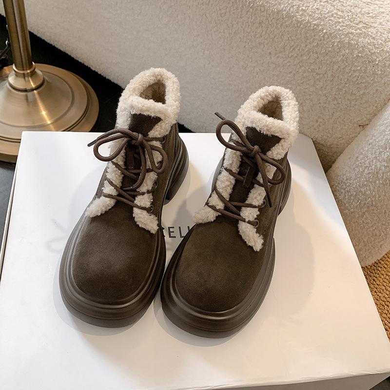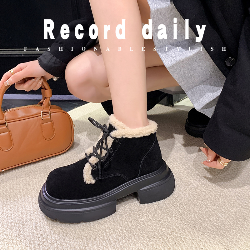 Super Hot Martin Boots Women Winter Velvet Short Boots Thick-soled Fur Shoes Snow Boots Frosted Leather Cotton Shoes