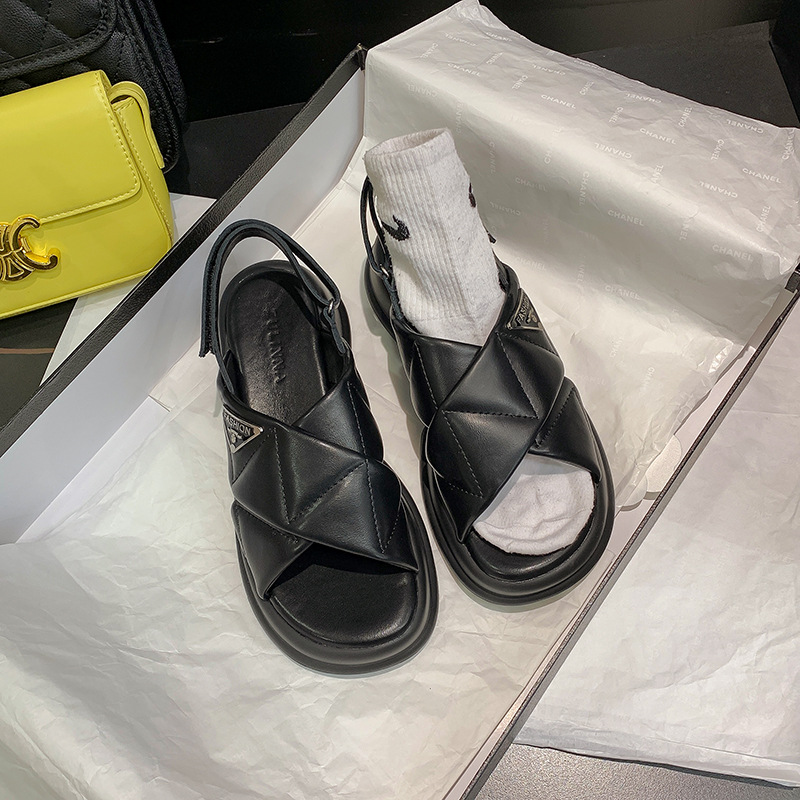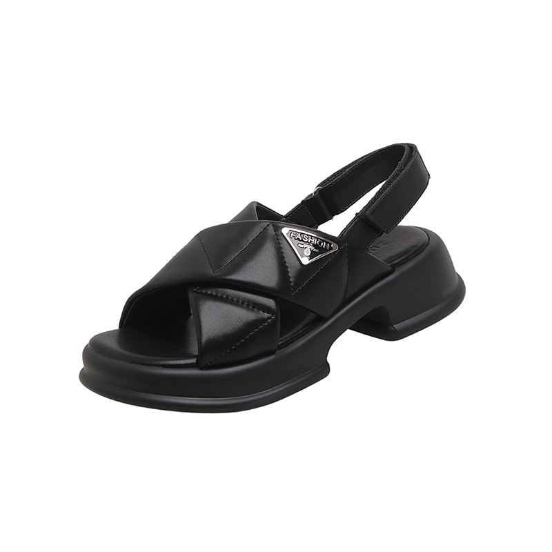 Thick-soled Sandals For Women,Fashionable Outerwear For Summer,Ladies'Genuine Leather,Versatile Cross-strap Flat-soled Sports Roman Shoes