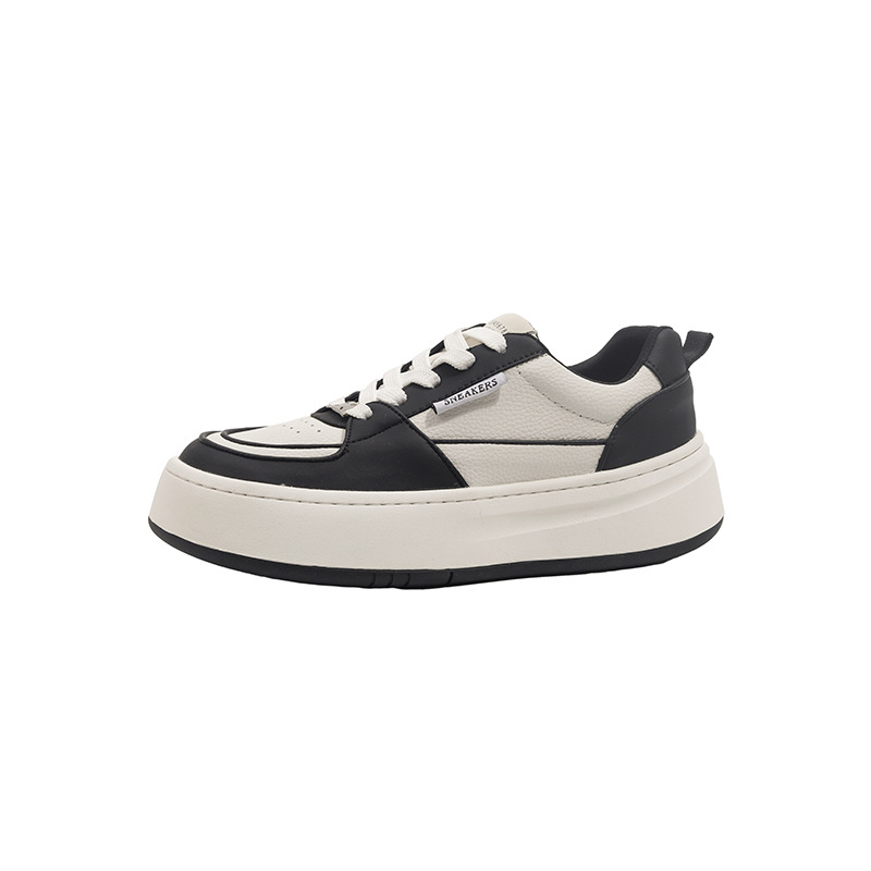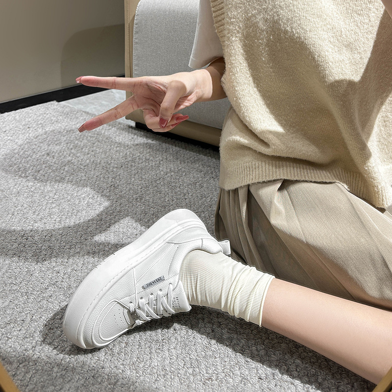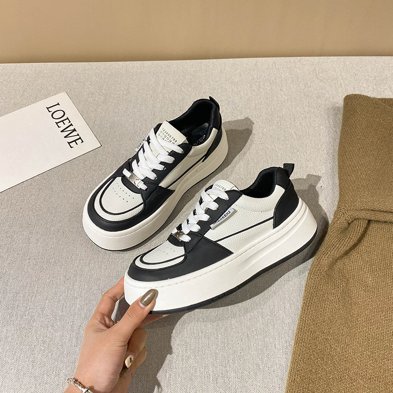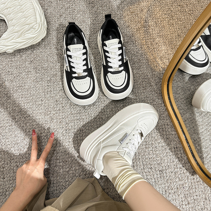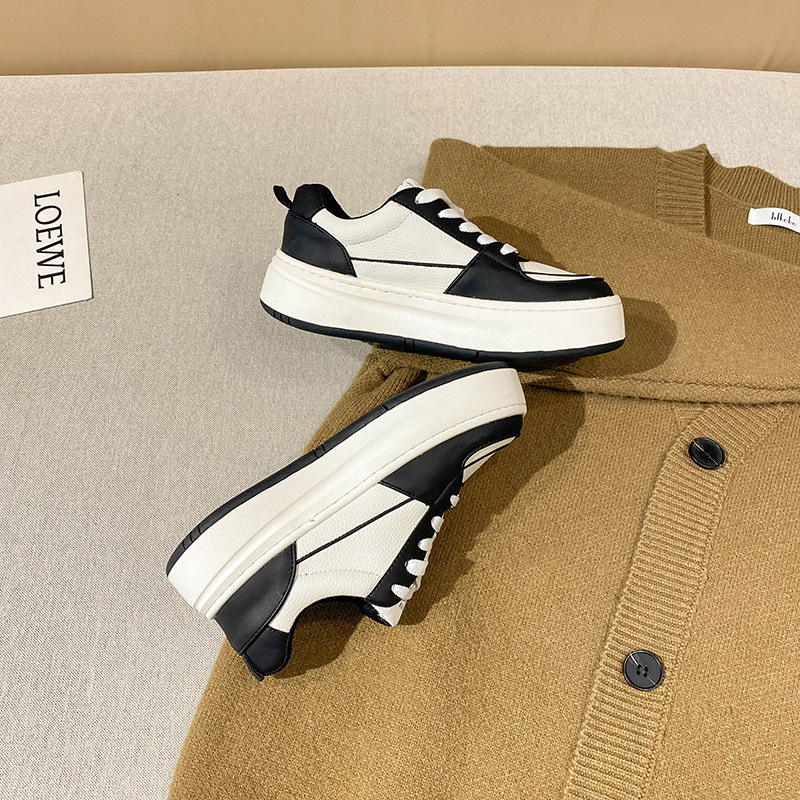 Thick-soled Genuine Leather White Shoes For Women All-match Lace-up Black And White Sports Shoes Height-increasing Sneakers Casual Shoes