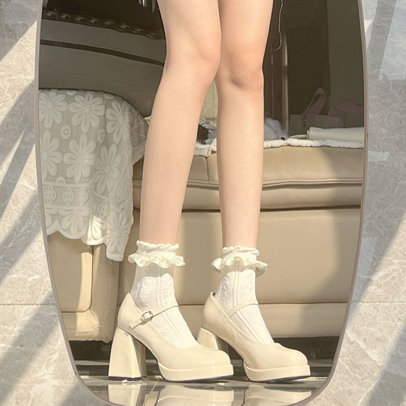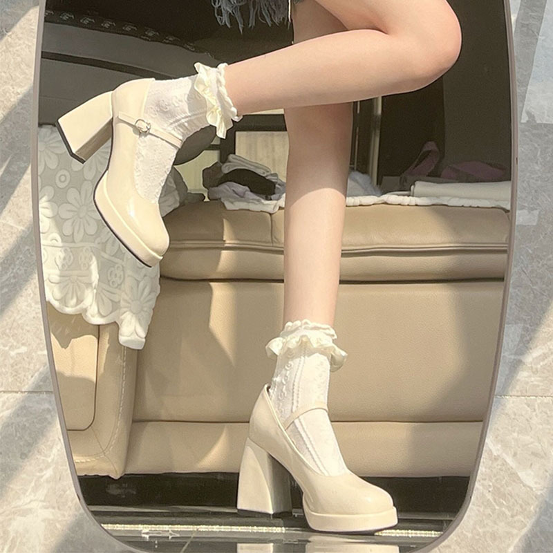 In Stock~~High Heels Spring Women's Shoes JKSmall Leather Single Shoes Thick Heels French Retro Black Mary Jane