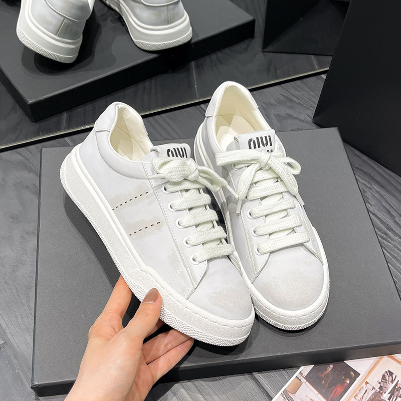 Genuine Leather Rubbed White Shoes For Women Korean Version Casual Sports Platform Thick Bottom Retro Old Dirty Shoes For Women